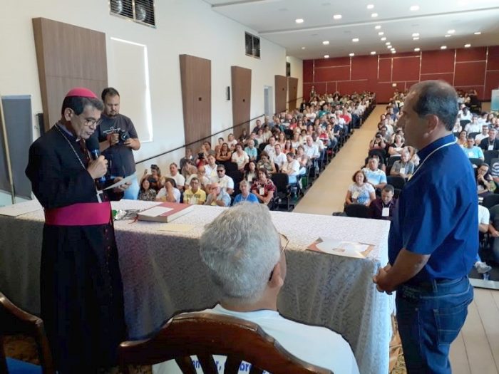 No final da 4ª Assembleia Diocesana de Evangelização, o bispo Dom José Aristeu, apresentou e institui como novo coordenador diocesano de Evangelização, padre João Veloso Arantes.