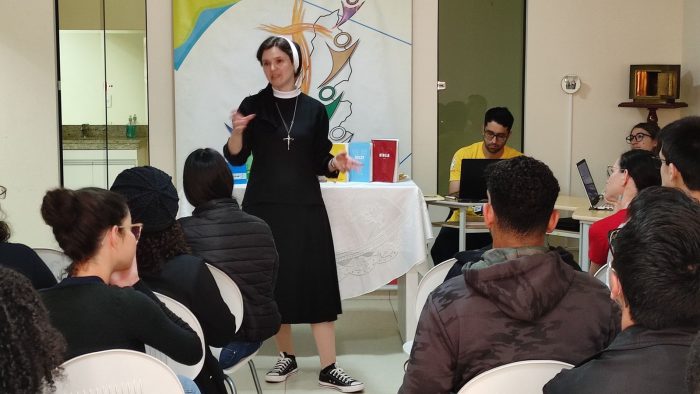 A religiosa esteve no Centro Missionário de Evangelização Dom Belchior, em Luz, e encontrou com a equipe de coordenação e os representantes das diversas expressões juvenis do Setor Juventude Diocesano.