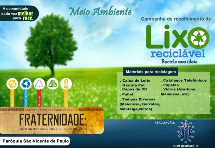 O tema da CF deste ano nos propõe uma reflexão sobre o cuidado com a natureza nesta imensidão de flora e fauna espalhadas nos biomas brasileiros. Neste propósito, a Juventude Mariana Vicentina está mobilizando a comunidade paroquial em um projeto de reciclagem.