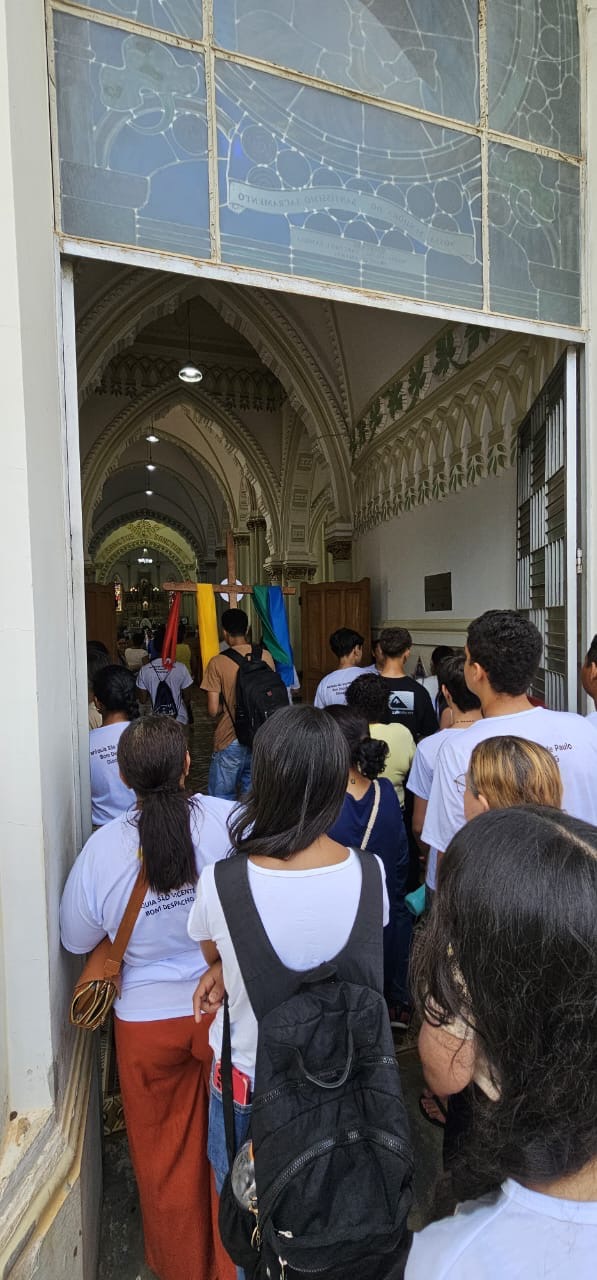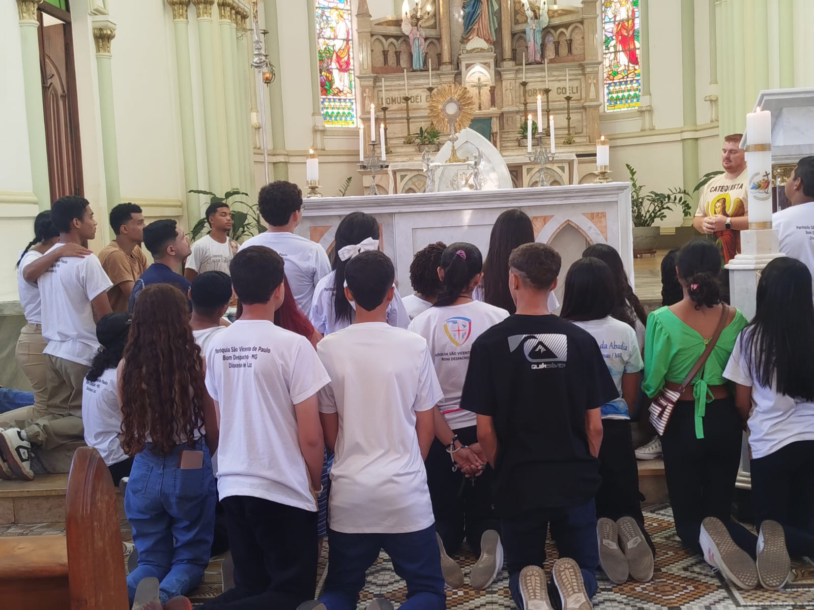 A caminhada teve início na Matriz São Vicente de Paulo, com um profundo momento de Leitura Orante da Palavra. Em seguida, seguiram rumo à Igreja Matriz Nossa Senhora do Bom Despacho, Igreja Jubilar da Forania de Bom Despacho.