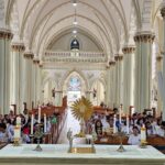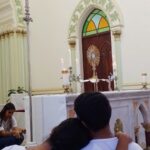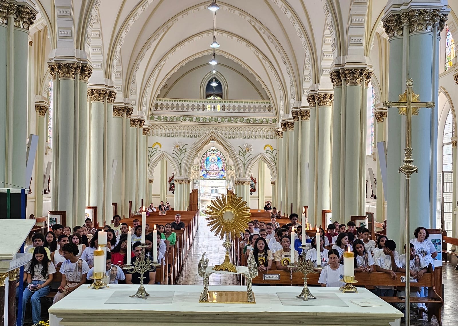 Ao chegar à Igreja Jubilar, os fiéis adentraram pela porta principal em oração, seguido de um lindo momento de adoração ao Santíssimo Sacramento, onde entregaram a Deus a caminhada e agradeceram pelas bênçãos recebidas.