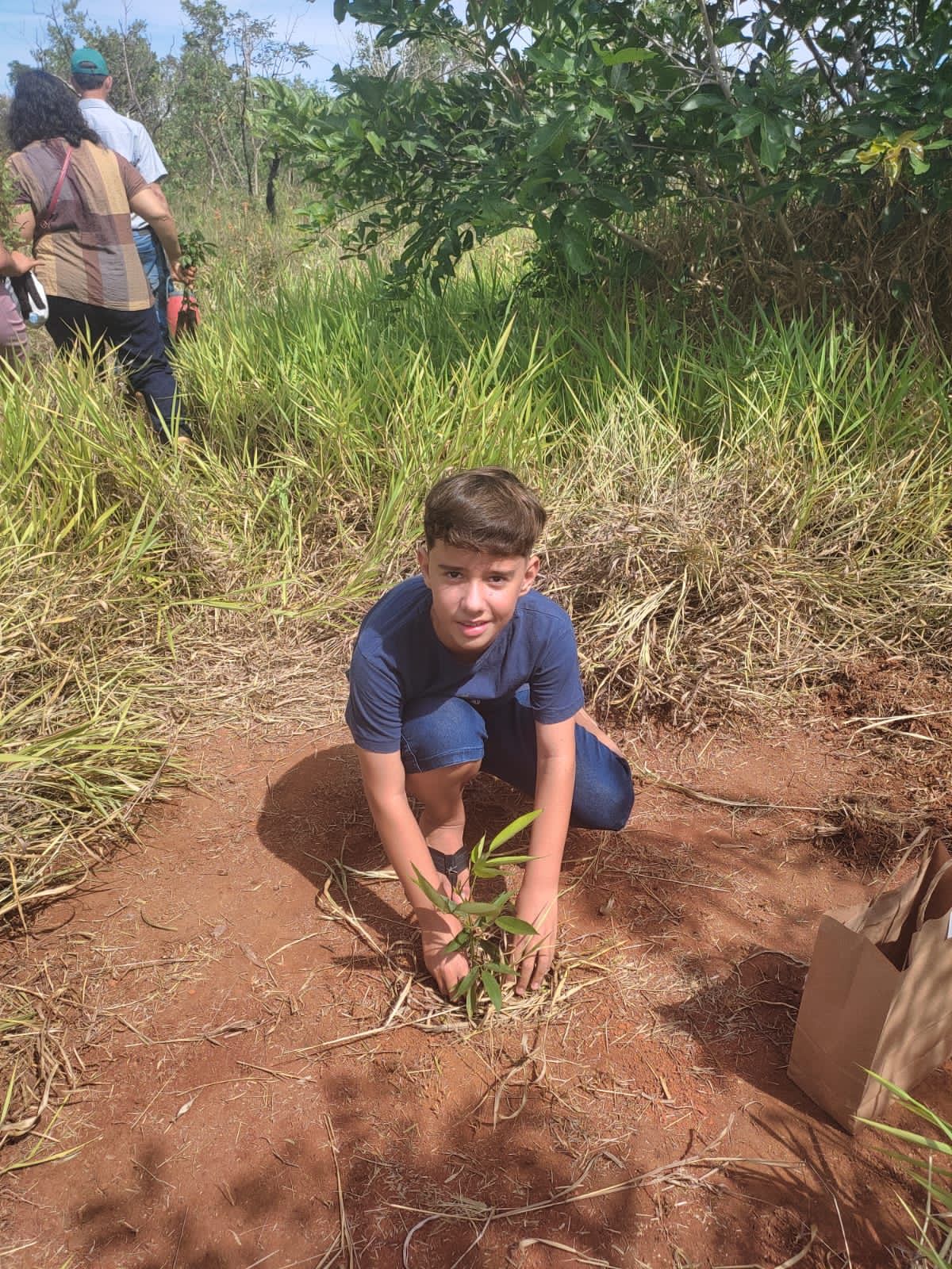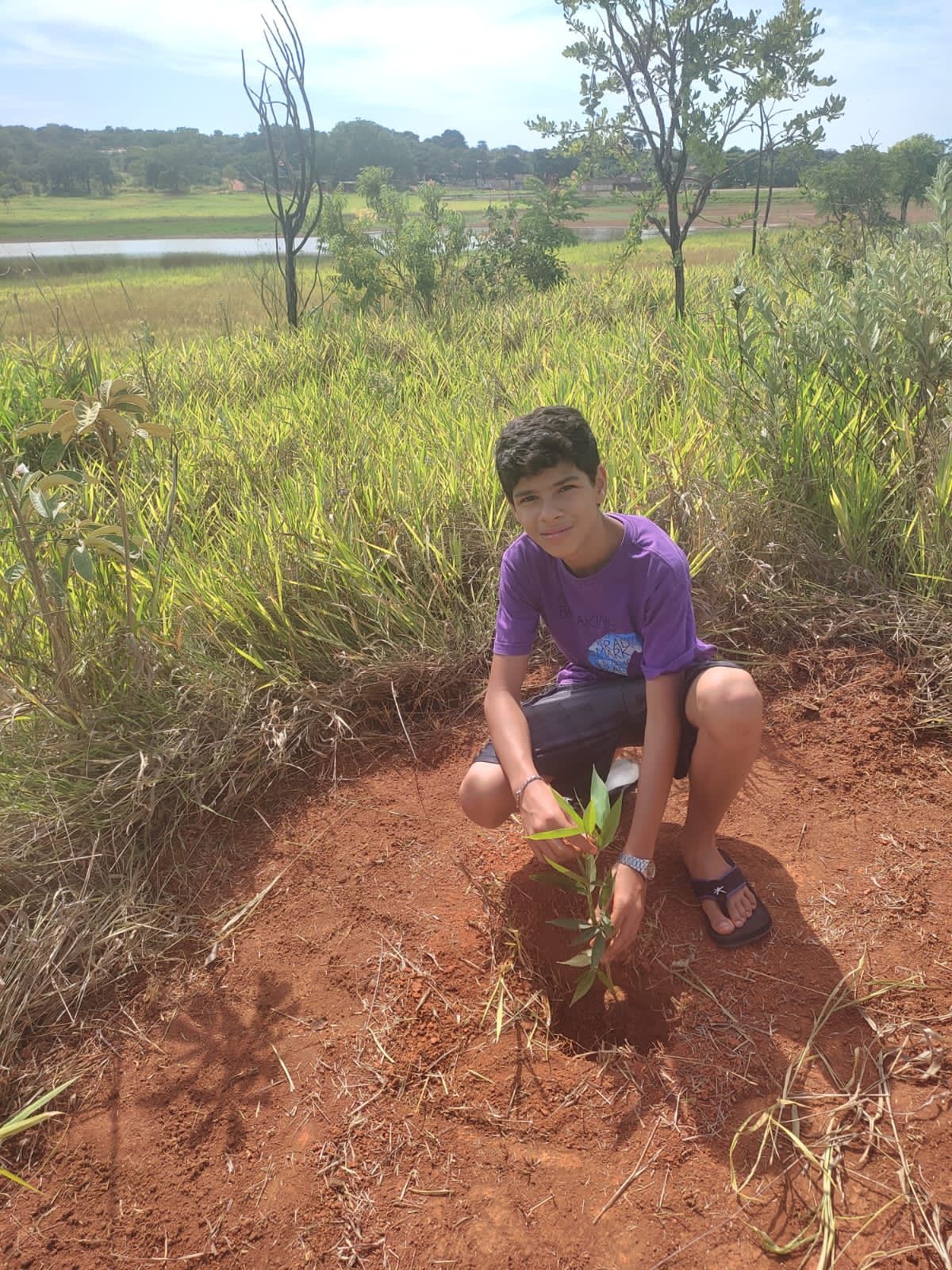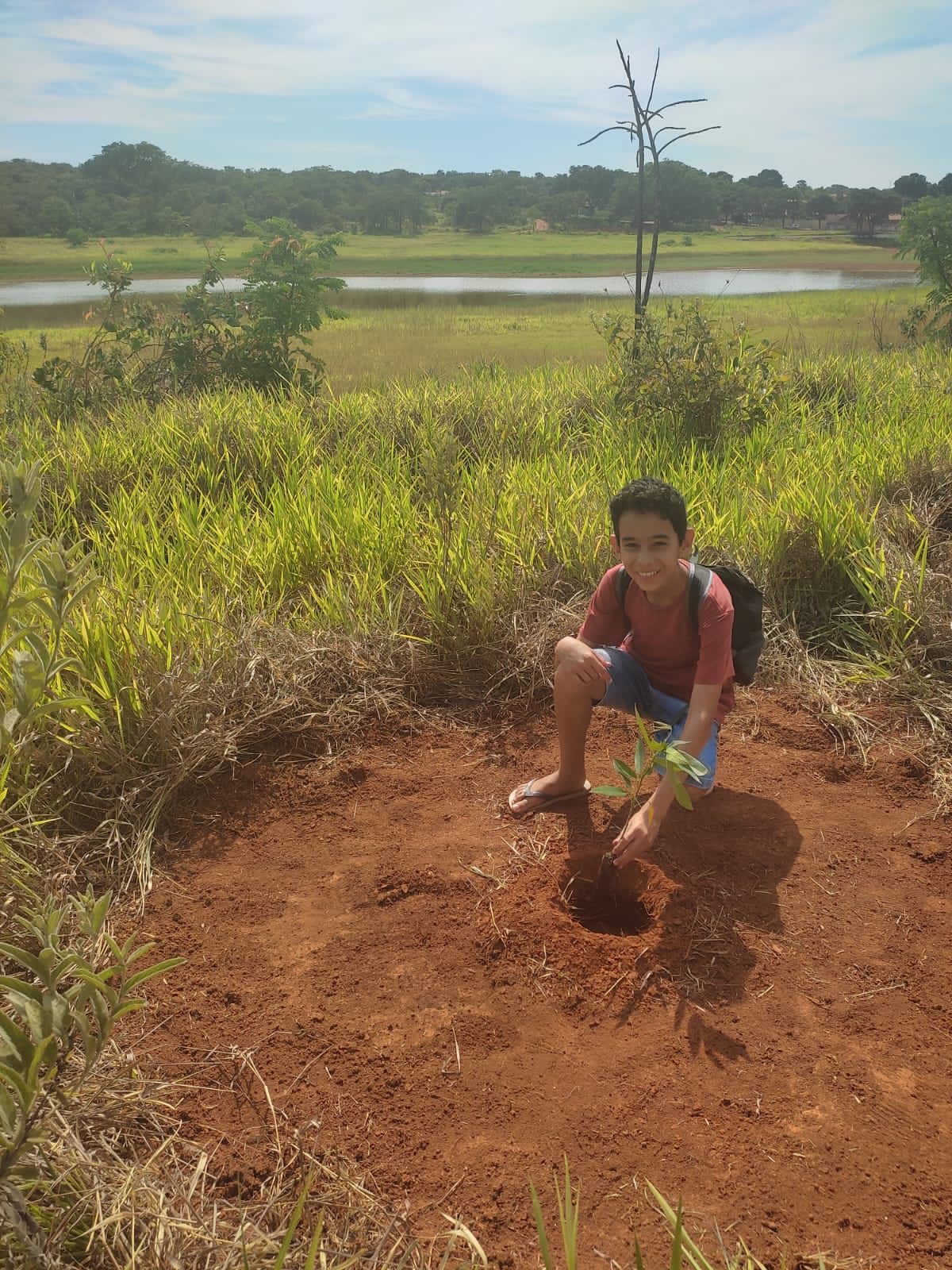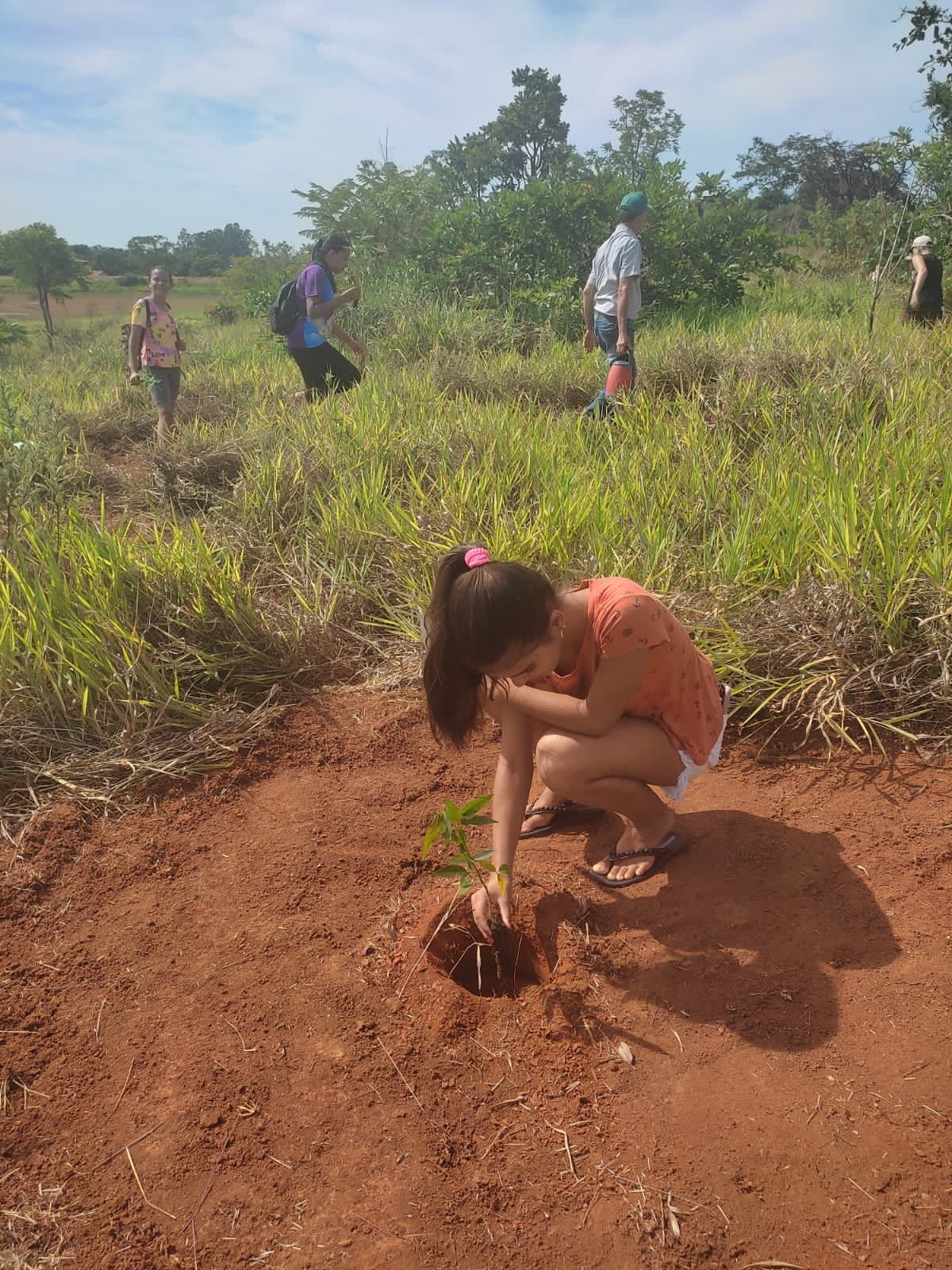 Os jovens e adolescentes juntaram-se a uma caminhada ecológica e contribuíram com o plantio de mudas ao redor da lagoa local.