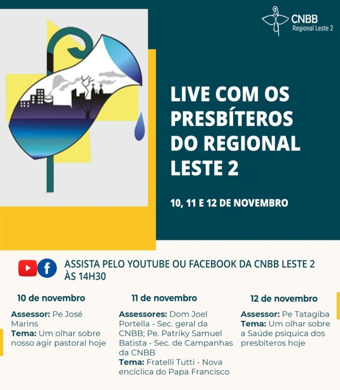 A Comissão Regional de Presbíteros (CRP) do Regional Leste 2 da CNBB irá promover três dias de transmissões ao vivo no período de 10 a 12 de novembro.