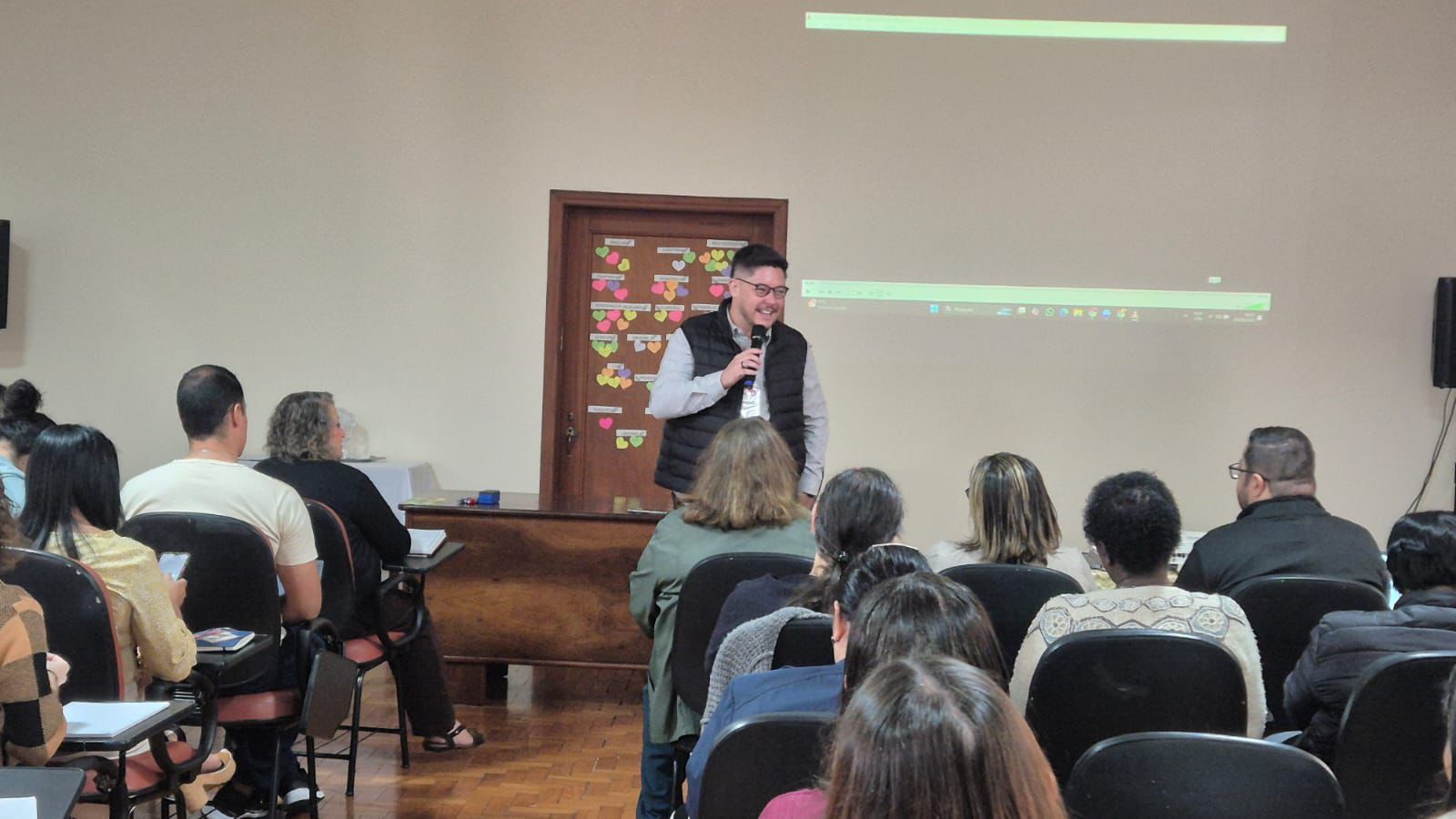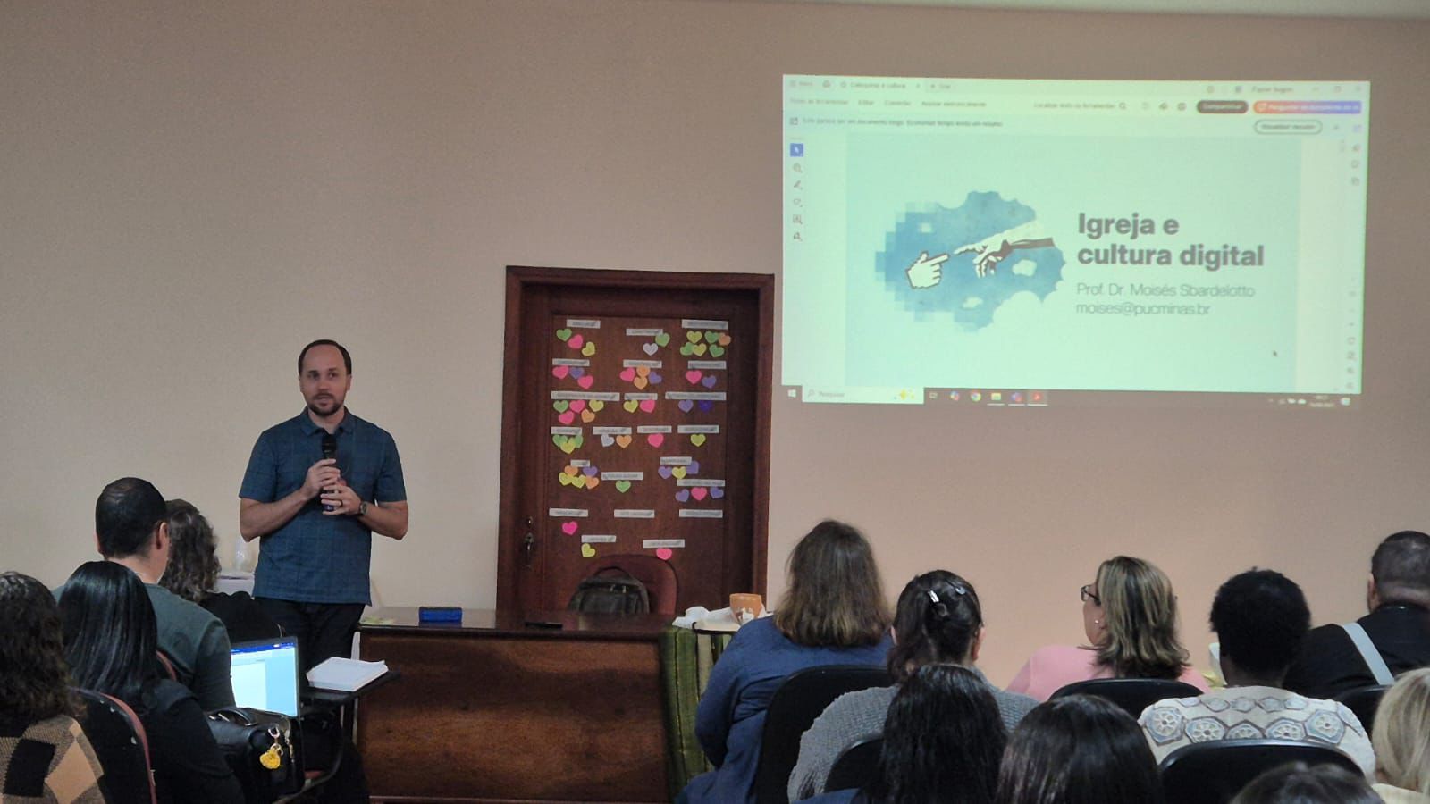 O Prof. Dr. Moisés Sbardelotto (PUC-MG) refletiu com o grupo sobre a catequese na cultura digital, destacando o impacto dessa realidade para a evangelização e a iniciação à vida cristã.