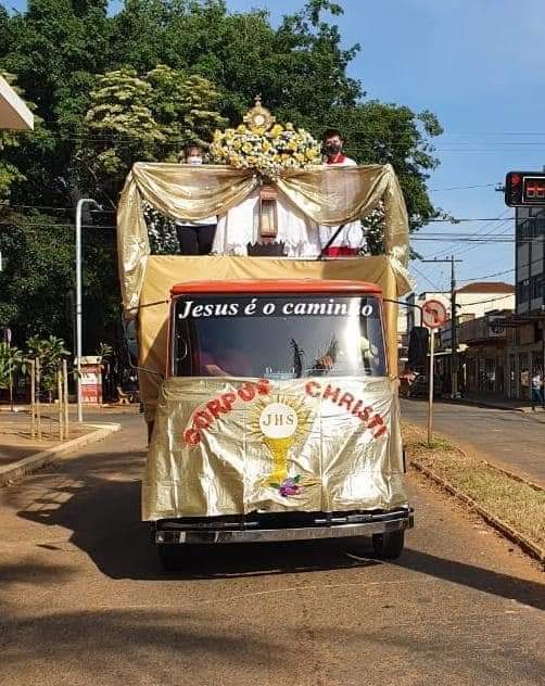 Em seguida, houve uma procissão em um veículo com o Santíssimo Sacramento, que passou por algumas ruas e comunidades da paróquia.