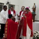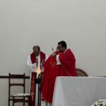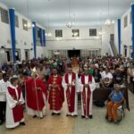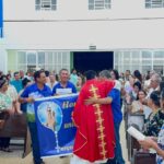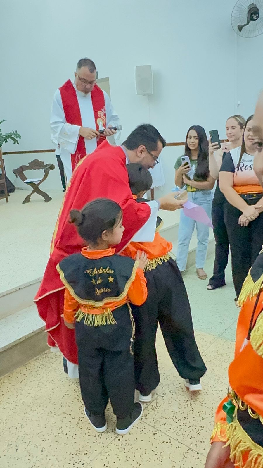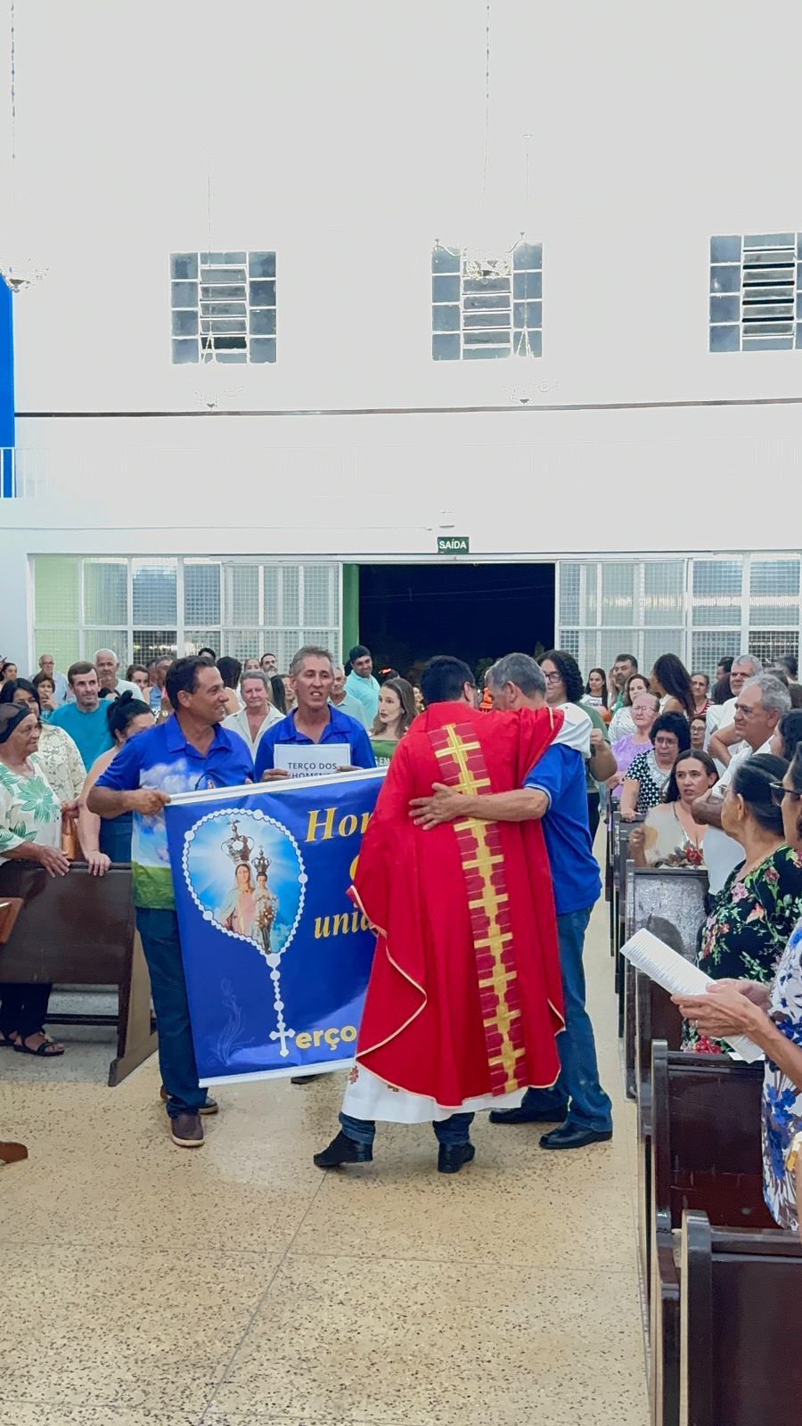 Após a Santa Missa, houve uma confraternização, no salão ao lado da igreja Matriz, para acolhimento de todos os paroquianos, visitantes, o senhor Bispo, os padres e a família do padre Ednaldo.