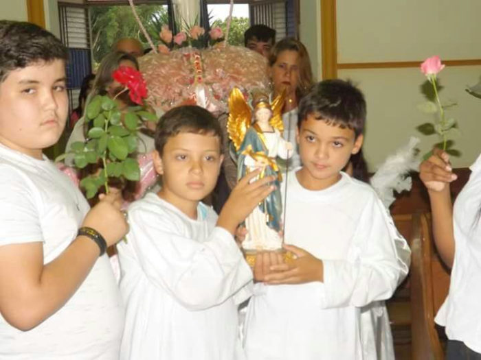 Crianças da Paróquia N. S. do Bom Despacho acolhem imagem peregrina de São Rafael
