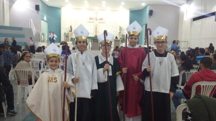 Na São Paulo Apóstolo, a Catequese durante a homilia fez uma pequena apresentação. Uma criança vestiu de avó e durante o teatro narrou a história da diocese, onde os cinco bispos foram lembrados e apresentados.