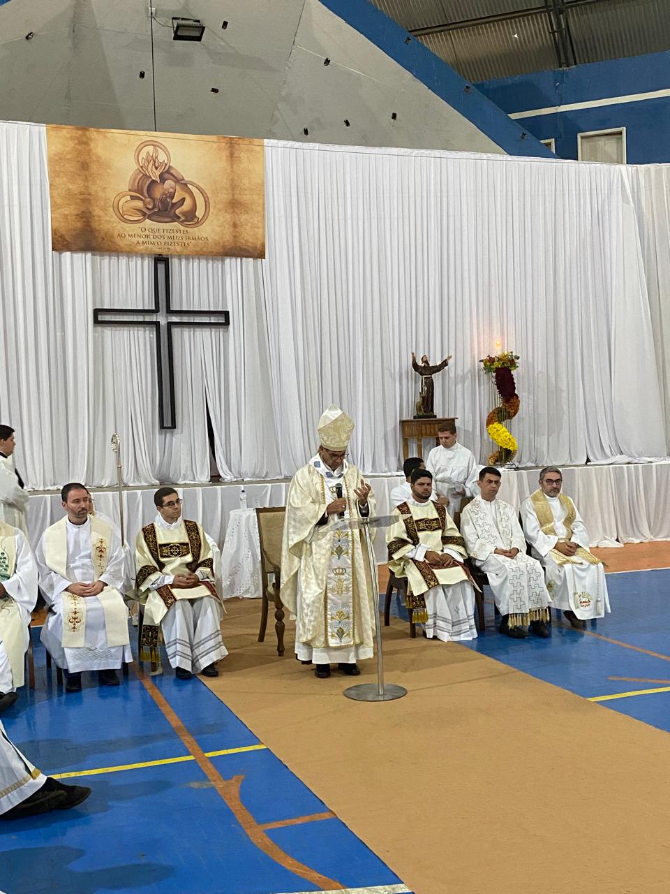 Na sua pregação, Dom José Aristeu refletiu sobre o lema escolhido pelo Vicente para a sua Ordenação Presbiteral, “O que fizestes ao menor dos meus irmãos, a mim o fizestes’ Mt. 25,40. “Para Jesus o critério da salvação é o amor caridade. O braço vertical da cruz nos eleva a Deus, mas o braço horizontal deve nos abraçar aos irmãos. Não podemos esquecer que o modelo evangélico está no rosto dos irmãos sofredores, por isso temos sempre que nos identificar com os pobres e os mais simples. O Senhor Jesus assemelhou-se aos pobres e pequenos”, reforça Dom Aristeu.