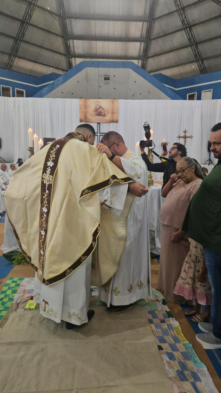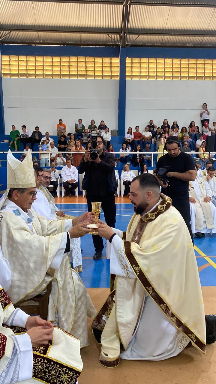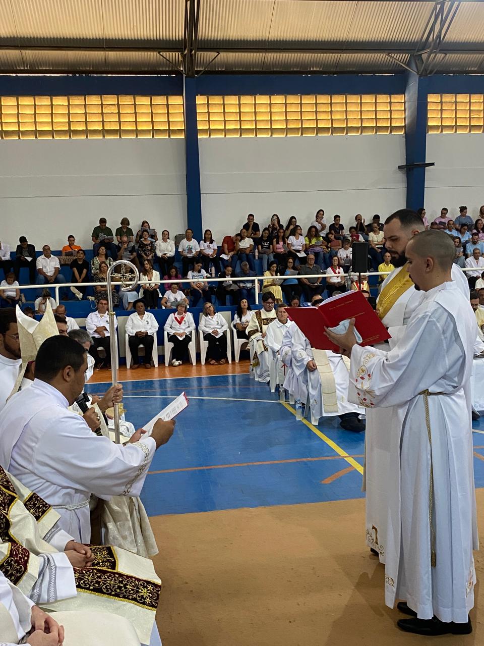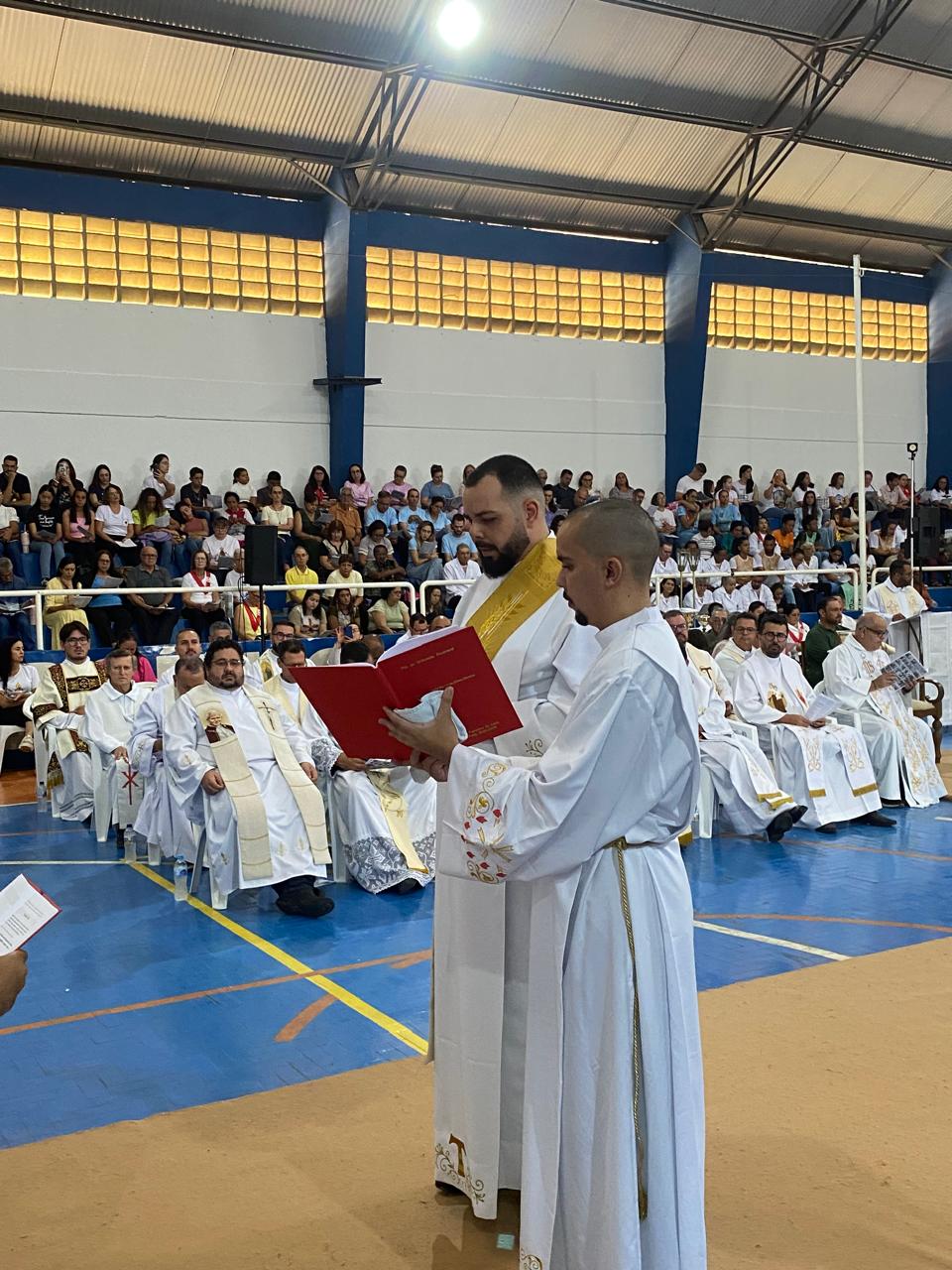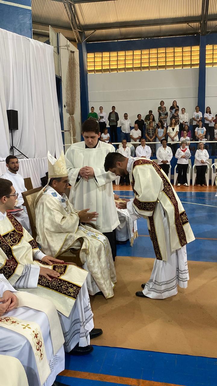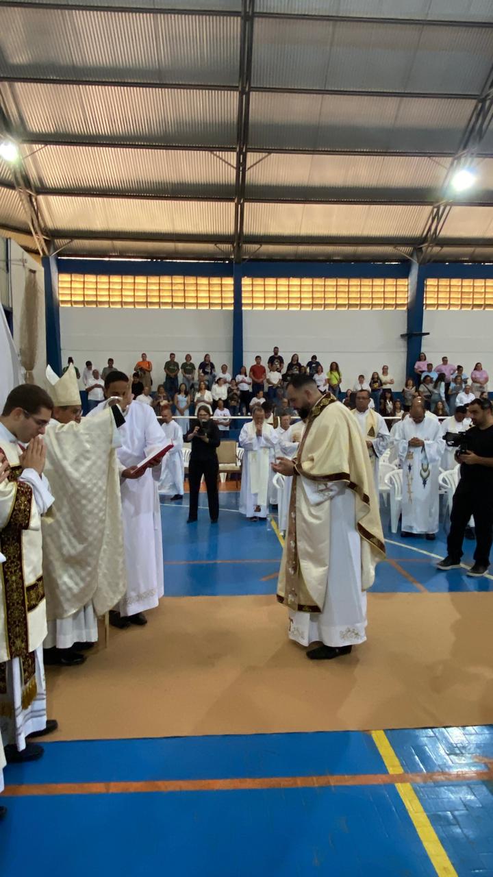 Centenas de fiéis, vindos de várias paróquias, especialmente daquelas onde o novo sacerdote havia feito trabalhos pastorais, lotaram o Poliesportivo. Em uma celebração rica em espiritualidade e participação orante, o então diácono Vicente Oliveira foi ordenado presbítero da Santa Igreja pela imposição das mãos e oração consecratória do bispo diocesano, Dom José Aristeu Vieira.