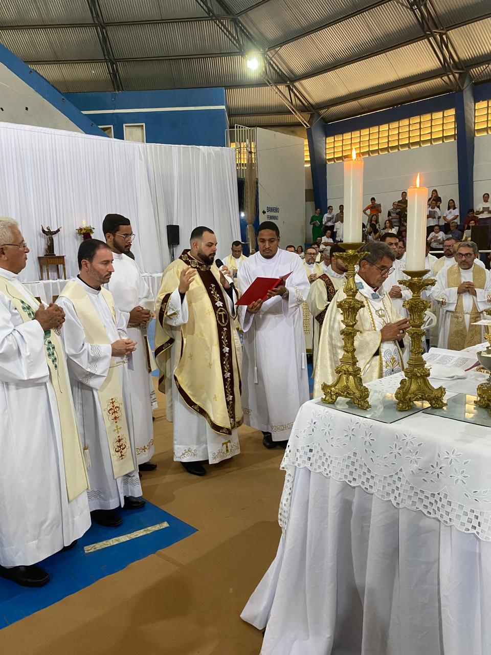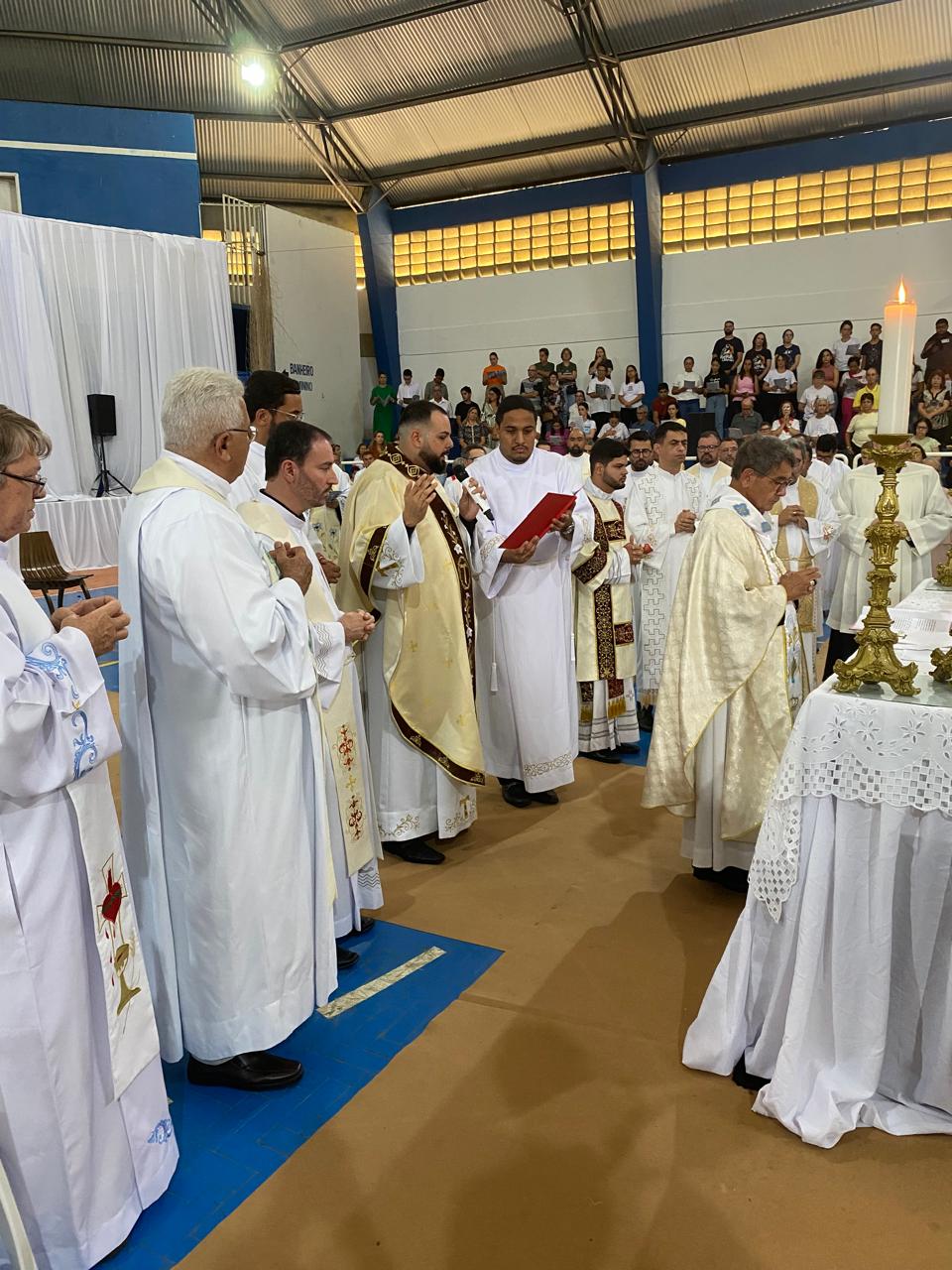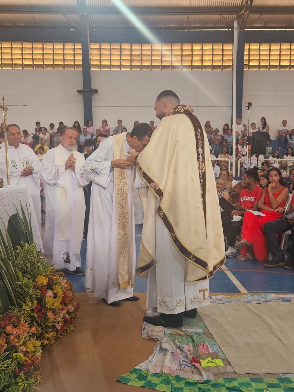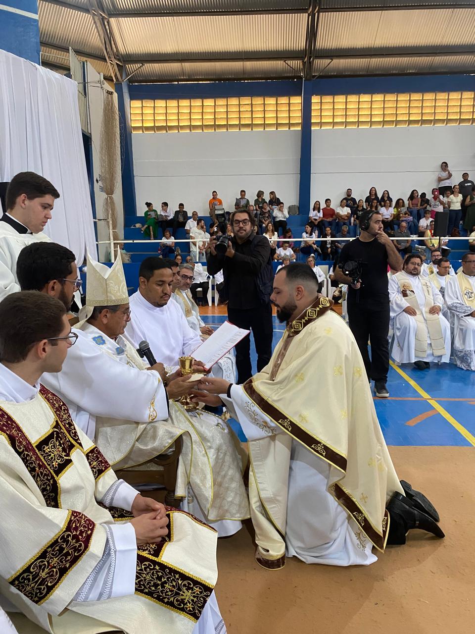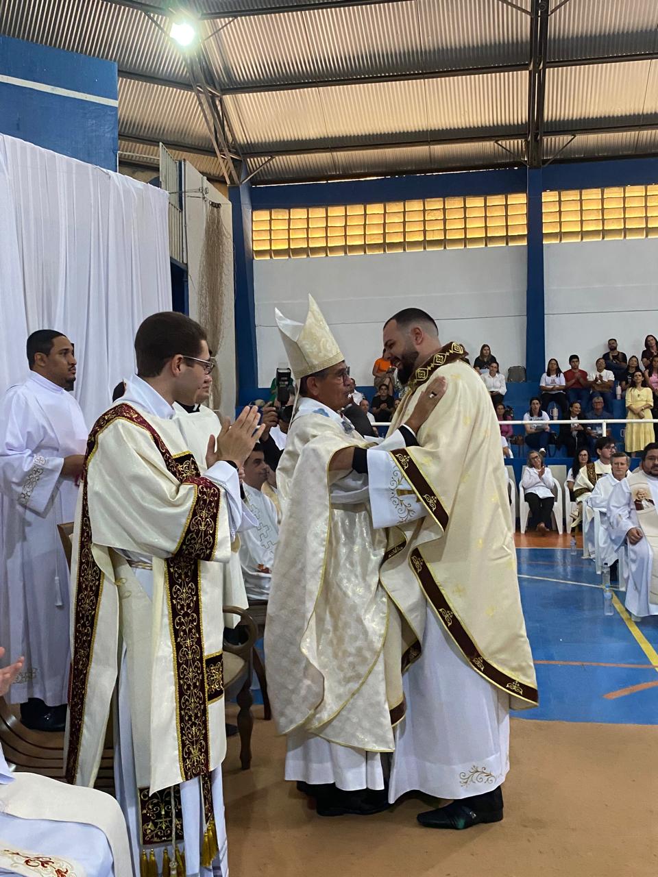 Centenas de fiéis, vindos de várias paróquias, especialmente daquelas onde o novo sacerdote havia feito trabalhos pastorais, lotaram o Poliesportivo. Em uma celebração rica em espiritualidade e participação orante, o então diácono Vicente Oliveira foi ordenado presbítero da Santa Igreja pela imposição das mãos e oração consecratória do bispo diocesano, Dom José Aristeu Vieira.