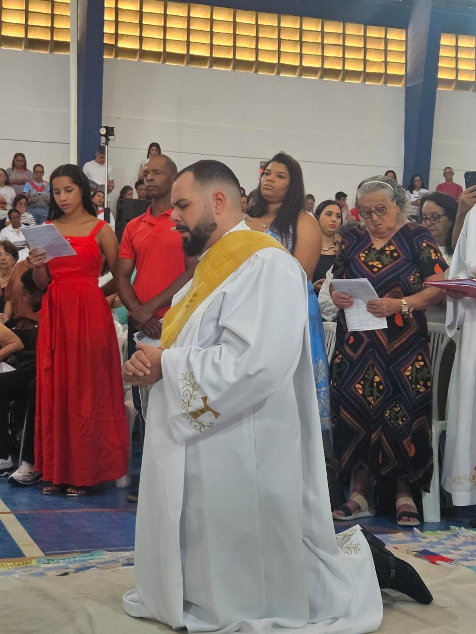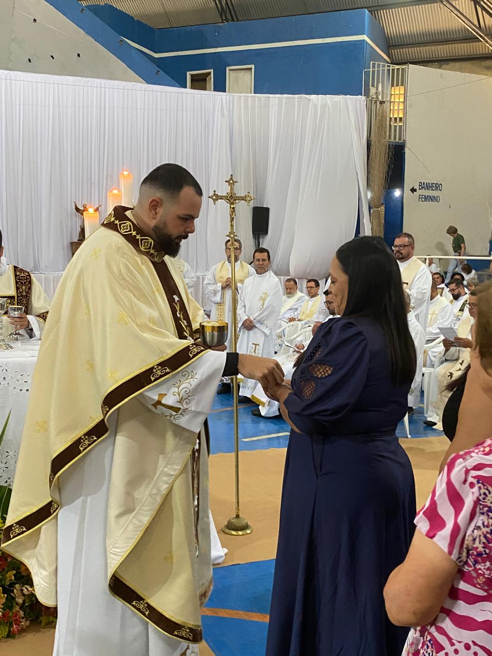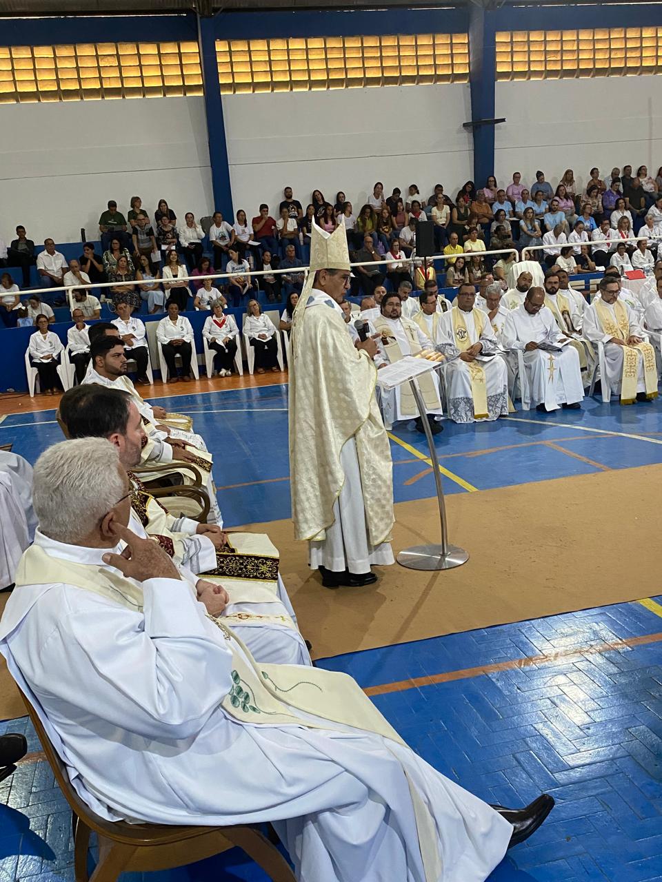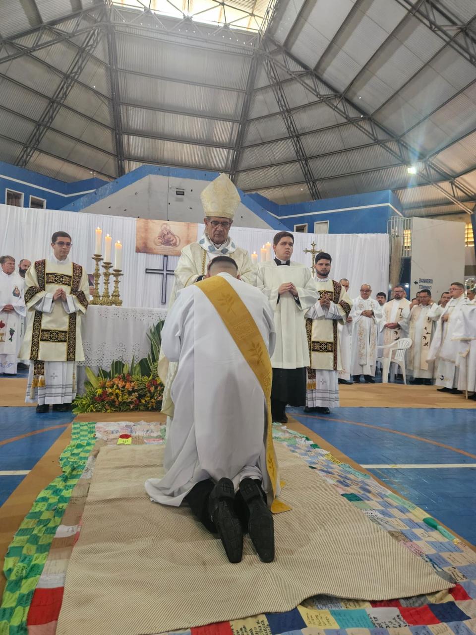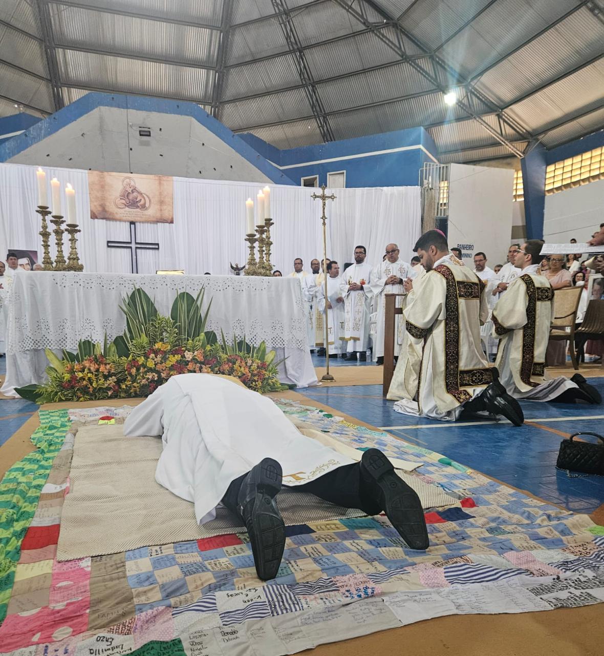 Centenas de fiéis, vindos de várias paróquias, especialmente daquelas onde o novo sacerdote havia feito trabalhos pastorais, lotaram o Poliesportivo. Em uma celebração rica em espiritualidade e participação orante, o então diácono Vicente Oliveira foi ordenado presbítero da Santa Igreja pela imposição das mãos e oração consecratória do bispo diocesano, Dom José Aristeu Vieira.