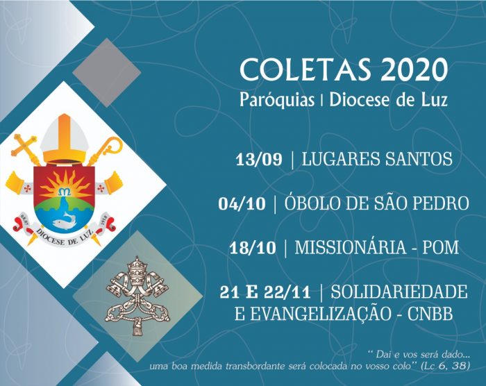 Óbolo de São Pedro – Também devido à atual emergência sanitária, o Santo Padre estabeleceu que, para este ano de 2020, a coleta do Óbolo de São Pedro, que tradicionalmente se realiza em torno à Solenidade dos Santos Pedro e Paulo, em 29 de Junho, será transferida em todo o mundo para o 27º domingo do tempo comum, 4 de outubro, dia dedicado a São Francisco de Assis.