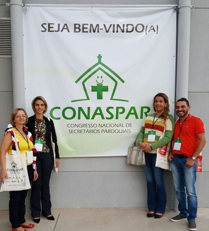 Os secretários paróquias e representantes da Diocese de Luz; padre Almerindo da Silveira (pároco da paróquia Nossa Senhora do Rosário, em Arcos); a secretária da paróquia Nossa Senhora do Rosário – Arcos, Lívia Mateus; as secretárias da paróquia Santo Antônio – Arcos, Leonides Correa e Elaine Rodrigues e a secretária da Catedral de Luz, Aline Coutinho estão participando do 1º Congresso Nacional de Secretários Paroquiais, oCONASPAR, no Hotel Rainha do Brasil, localizado no complexo do Santuário Nacional de Nossa Senhora Aparecida, em Aparecida, SP.