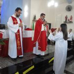 Além do bispo, o pároco padre Antônio de Simone também esteve presente e concelebrando a solenidade.