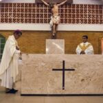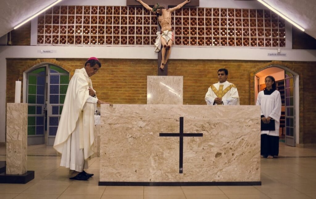A benção do novo altar foi realizada após a homilia. Dom Aristeu disse que tudo na igreja nos lembra Jesus Cristo, “pelo batismo pertencemos a uma só Igreja, este que é o templo de Deus,” enfatizou.