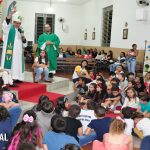 No final da tarde, Dom Aristeu também participou da Missa com as crianças, onde foi recepcionado com muita festa. Elogiou a participação delas, destacando a atenção e o comprometimento, parabenizando também a equipe pela dedicação.