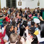 De forma muito carinhosa, envolveu todas as crianças na oração do Pai-Nosso, levando-as ao altar e recebendo no final da celebração o abraço da paz.