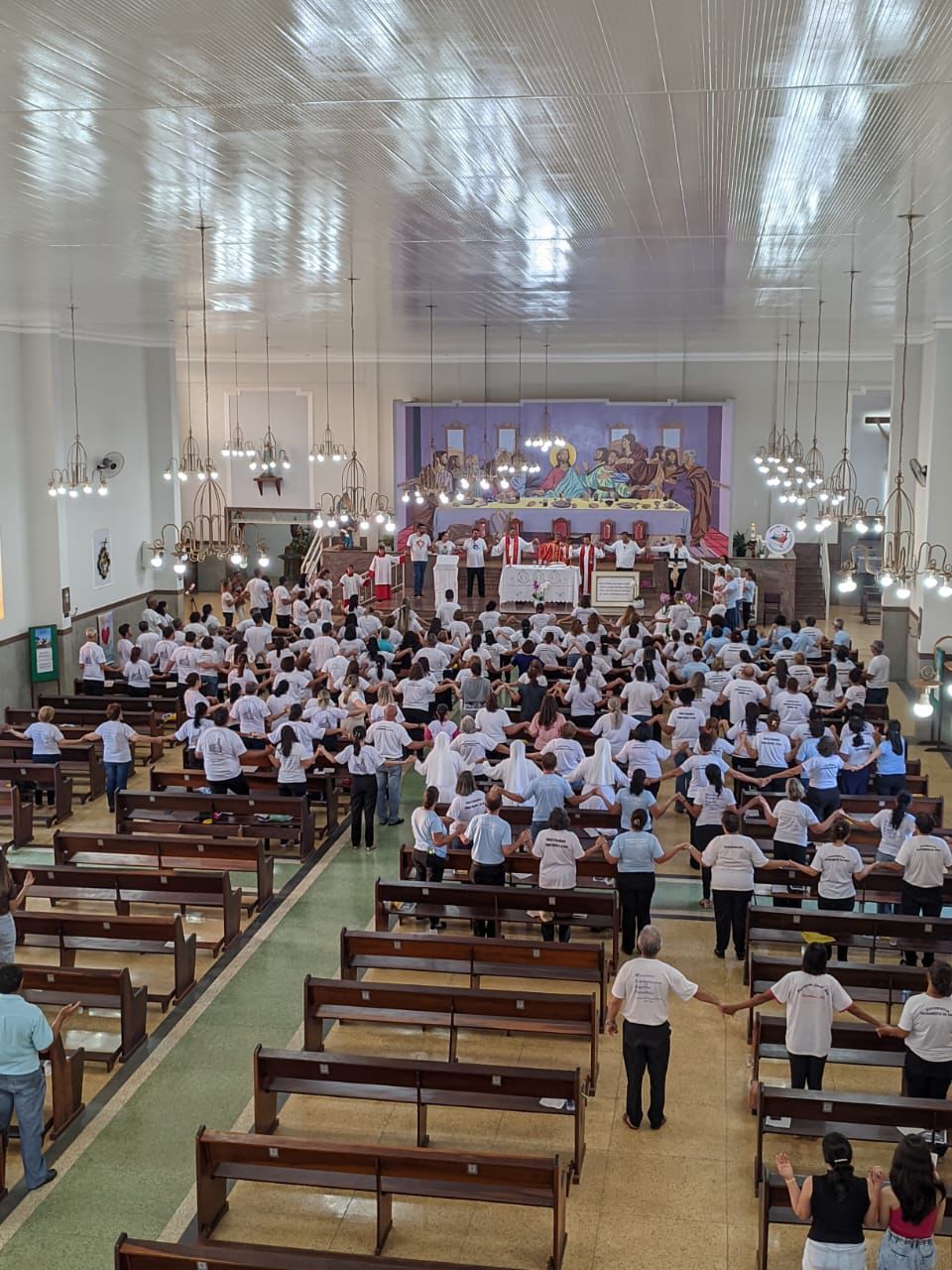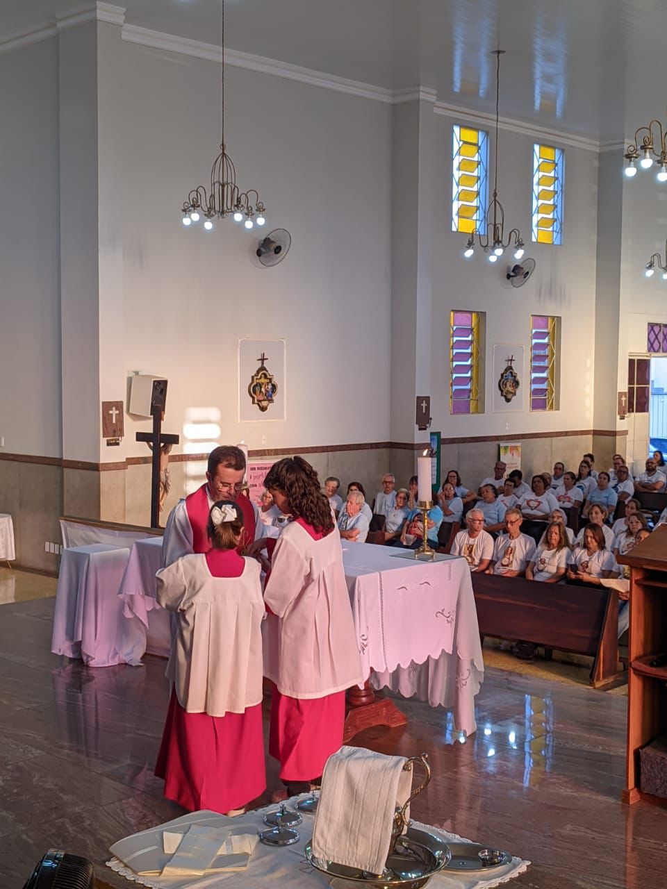 A celebração culminou com a Santa Missa, presidida pelo bispo diocesano, Dom José Aristeu, encerrando-se com uma nova partilha.