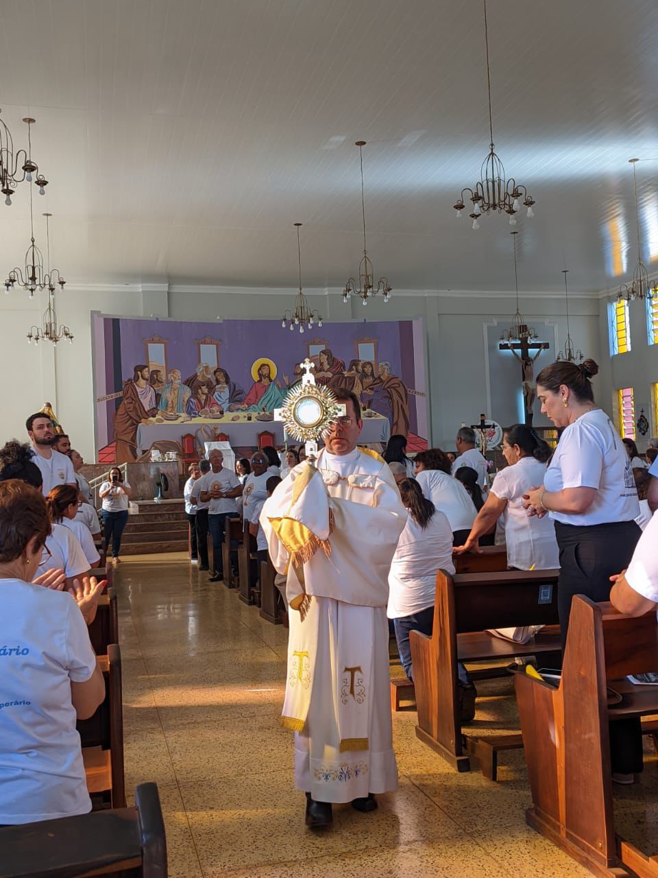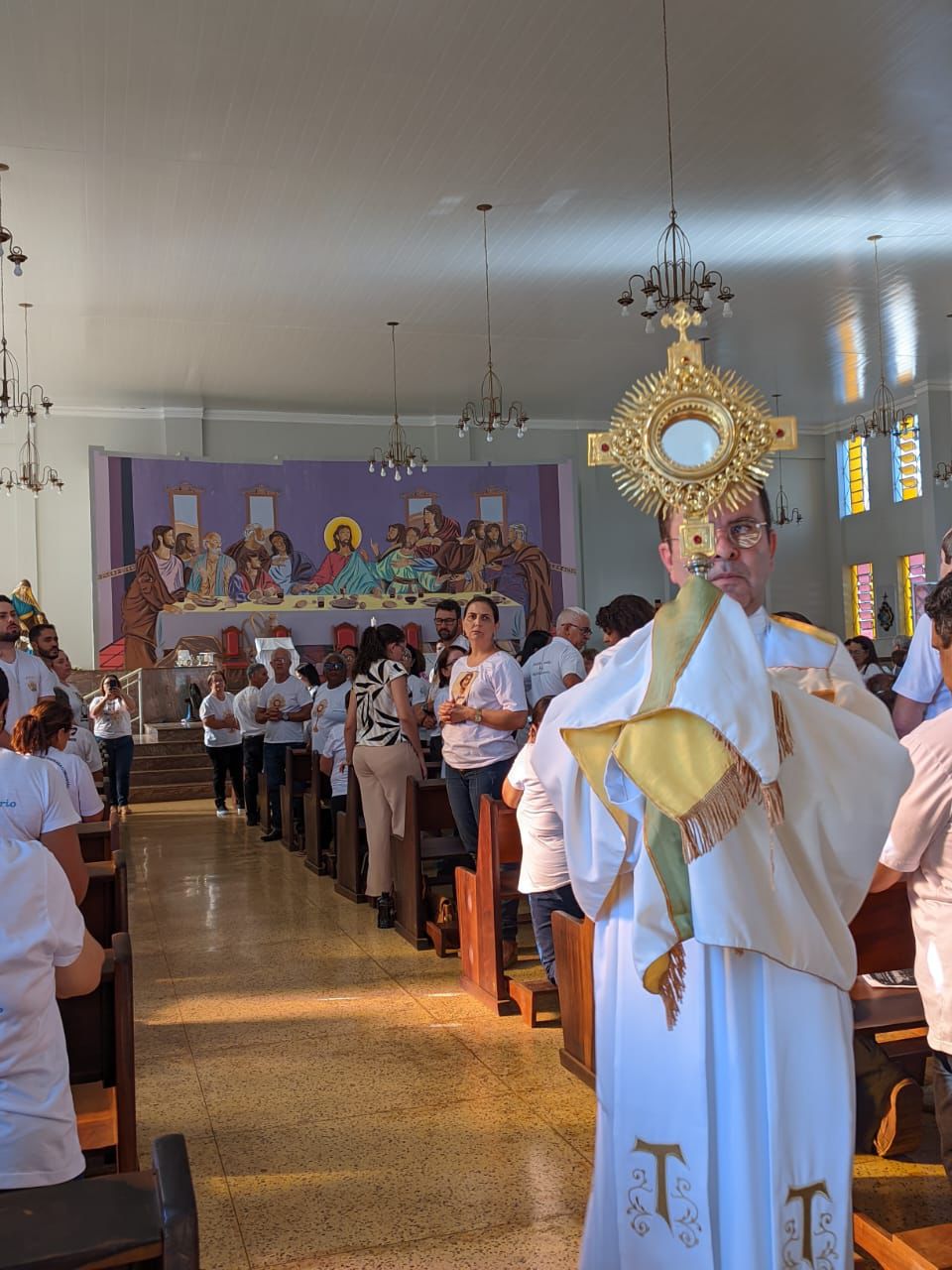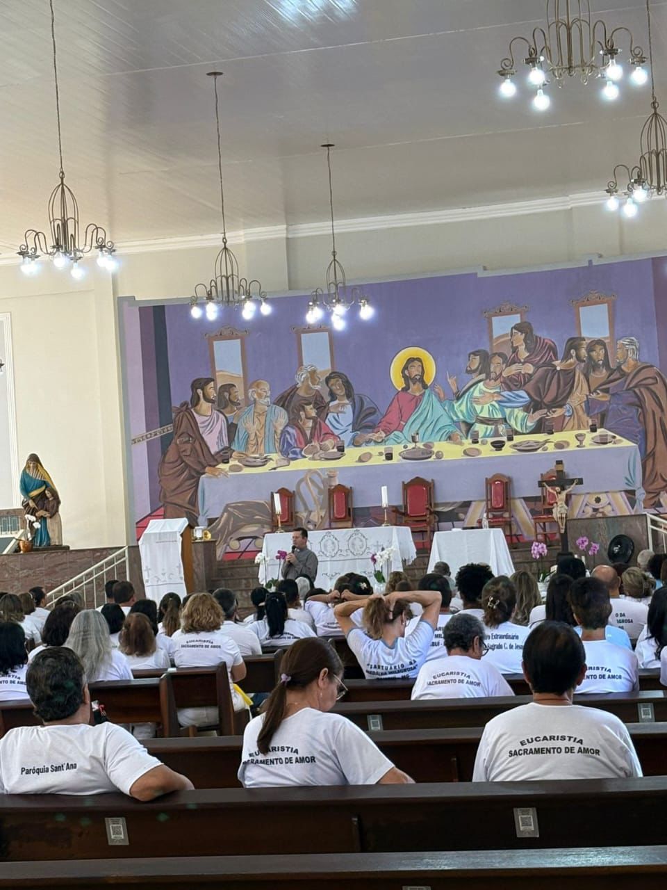 Em seguida, todos se reuniram para uma partilha fraterna no Salão de Festas da Matriz Sant’Ana e, logo após, viveram um profundo momento de Adoração ao Santíssimo Sacramento, conduzido pelo pároco local, padre Edson Augusto Teixeira.