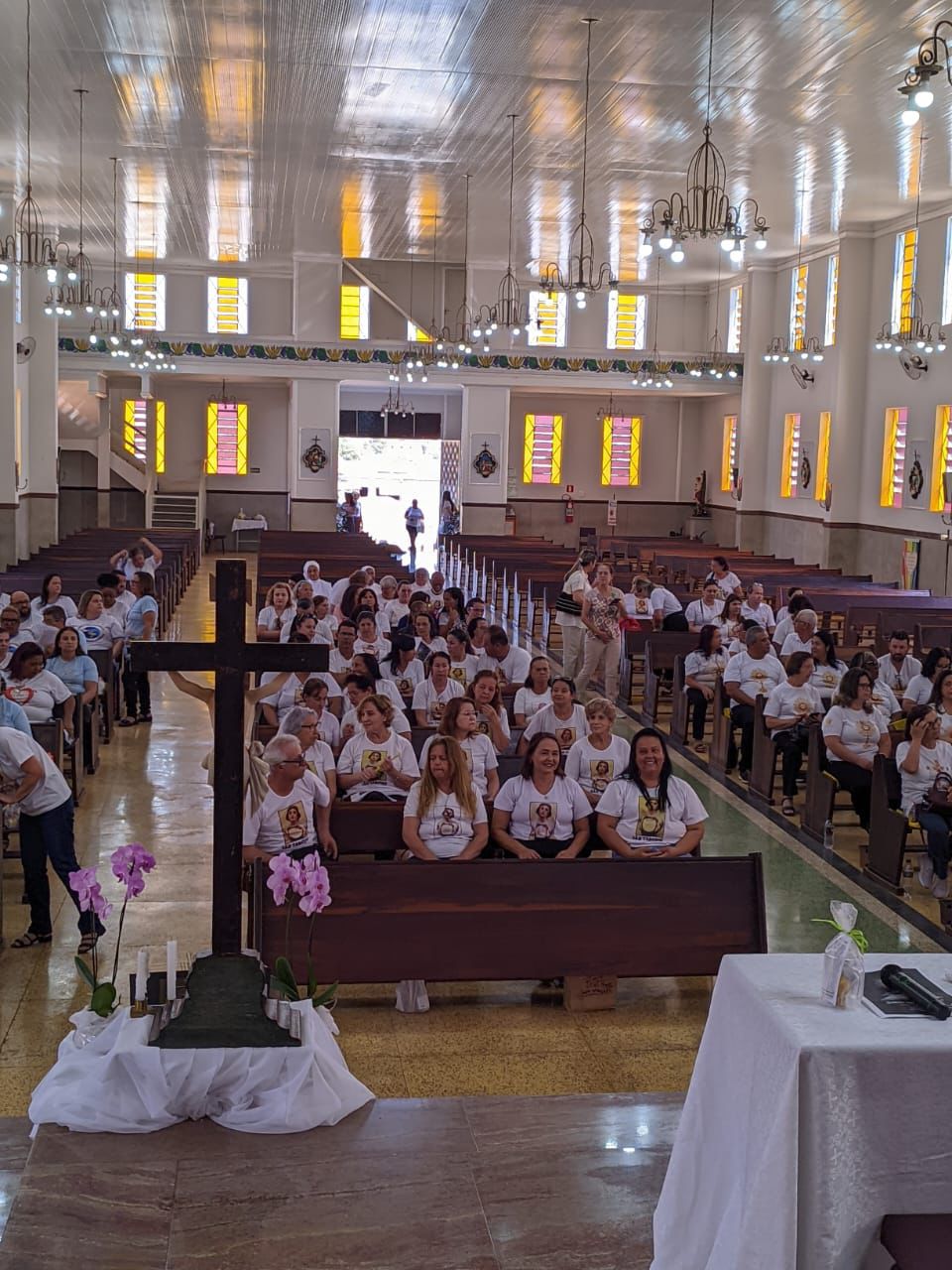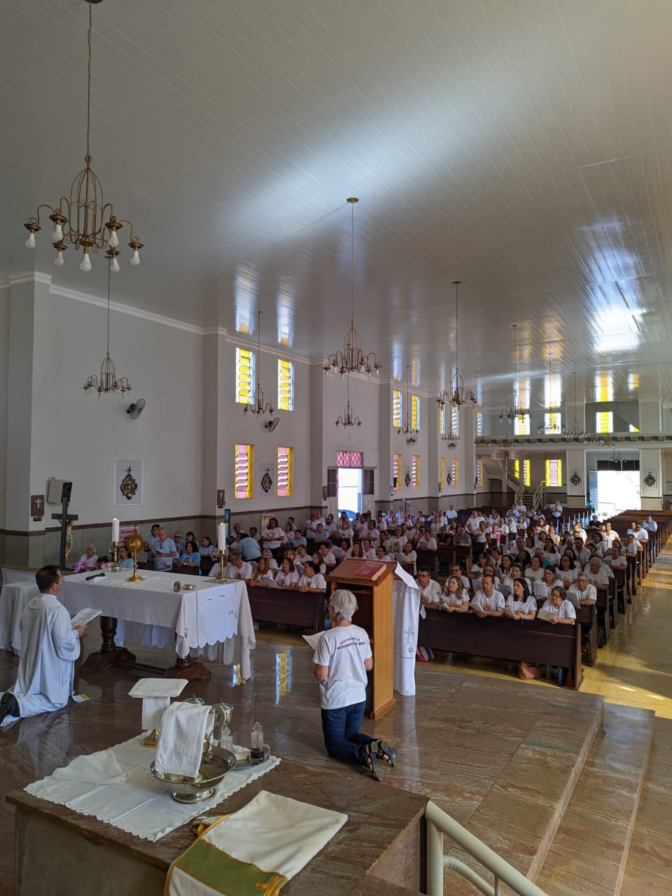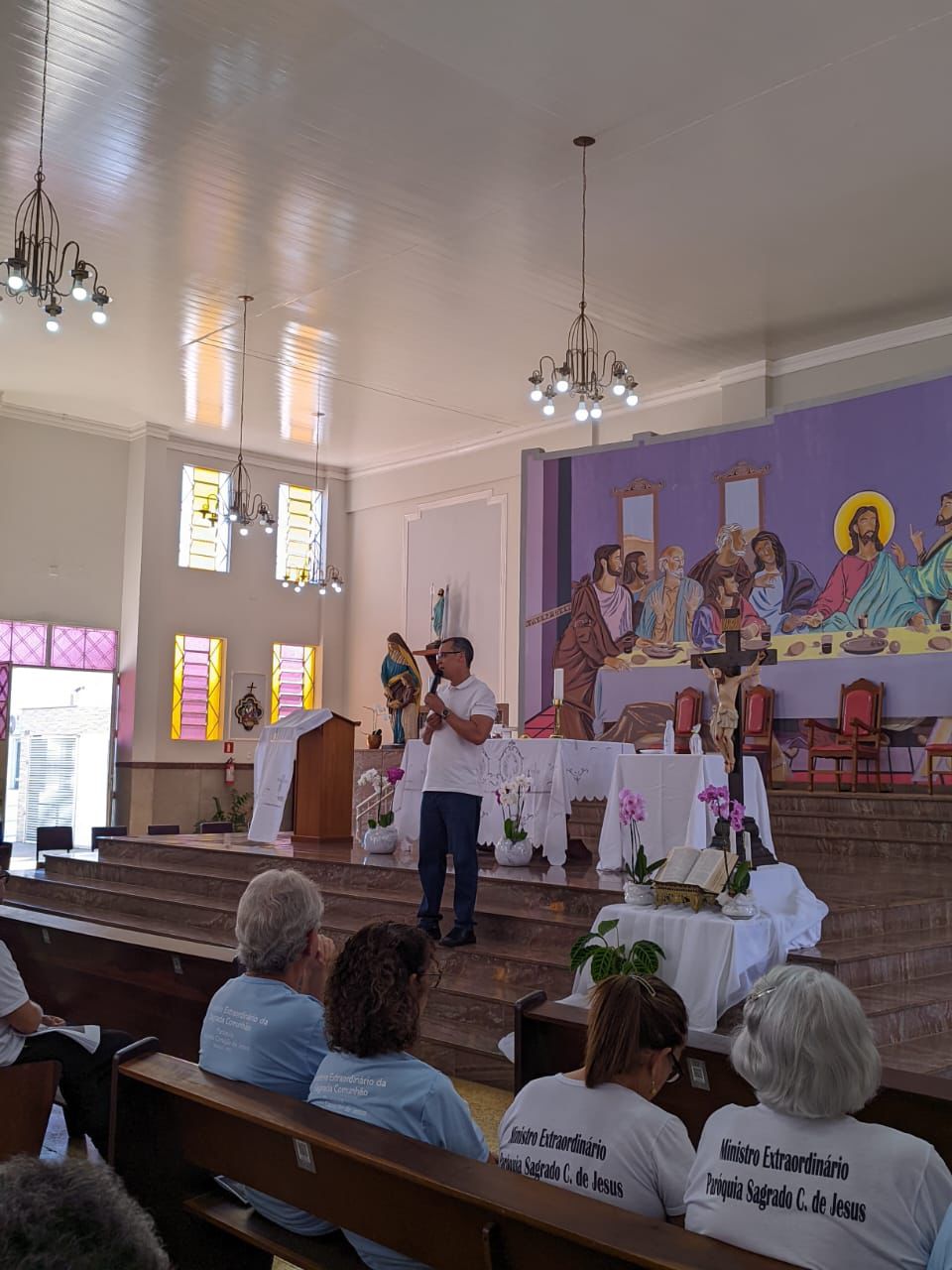 Em seguida, todos se reuniram para uma partilha fraterna no Salão de Festas da Matriz Sant’Ana e, logo após, viveram um profundo momento de Adoração ao Santíssimo Sacramento, conduzido pelo pároco local, padre Edson Augusto Teixeira.