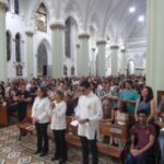 Seguiu-se a celebração com o acendimento da “vela jubilar” e um momento de penitência com a bênção e aspersão da água. O restante da liturgia, vivido com fé, contou com a participação calorosa da assembleia. O calor humano e a fraternidade foram claramente percebidos na oração do Pai Nosso, momento em que as vozes se uniram – em um tom tão alto que parecia chegar ao céu – e encheram a Matriz.