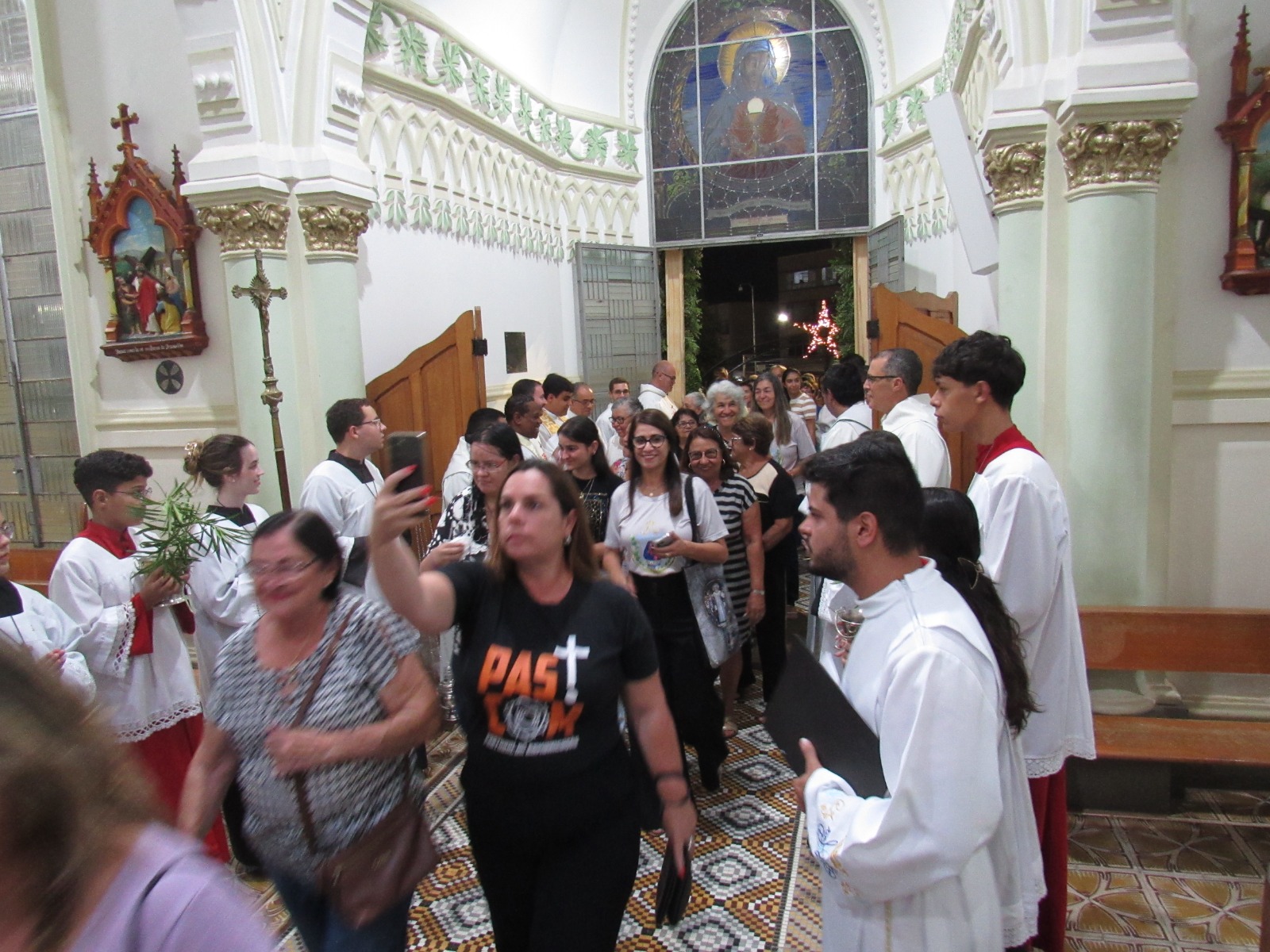 Seguiu-se a celebração com o acendimento da “vela jubilar” e um momento de penitência com a bênção e aspersão da água. O restante da liturgia, vivido com fé, contou com a participação calorosa da assembleia. O calor humano e a fraternidade foram claramente percebidos na oração do Pai Nosso, momento em que as vozes se uniram – em um tom tão alto que parecia chegar ao céu – e encheram a Matriz.