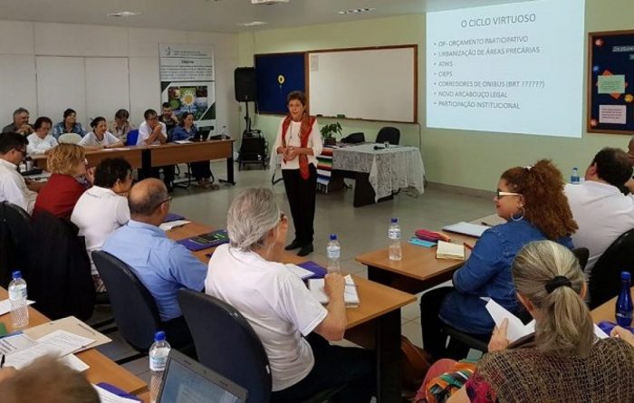 Democracia e realidade urbana – Ermínia Maricato, arquiteta, urbanista e professora aposentada da Universidade de São Paulo (USP) aprofundou com os participantes o tema da democracia, as cidades e a mobilidade urbana. “Democracia se faz, principalmente, onde as pessoas moram e frequentam, se faz a partir dos bairros, das escolas, das igrejas”, disse. Na avaliação da professora, isto foi abandonado pelas forças democráticas do Brasil.