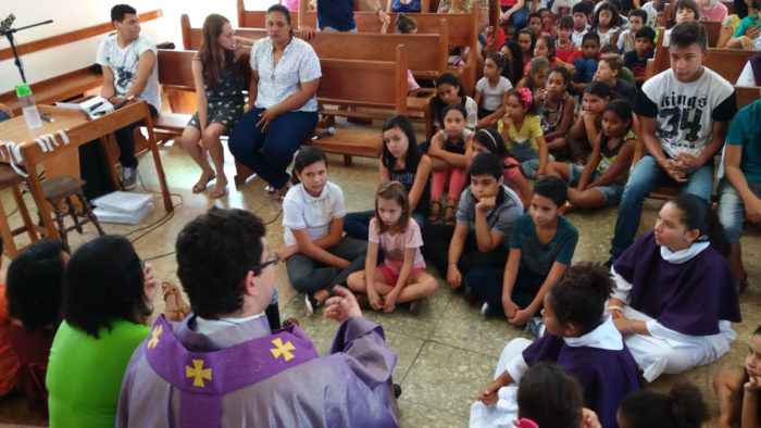 No domingo, 04 de março, na Igreja Matriz da Paróquia São Sebastião, em Estrela do Indaiá, foi promovido e realizado pelo Grupo Jovens Estrangeiros, a acolhida dos catequisandos da paróquia.