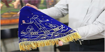 A Irmã Teresa Margarida do Coração de Jesus contou ao portal A12 que, para fazer o bordado, inspirou-se em uma canção de Nossa Senhora, cuja letra diz “nas curvas de um M, no rio brasileiro, Maria aparece à luz do Cruzeiro”.