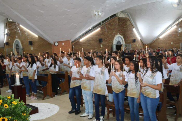 A celebração presidida pelo pároco, pe. Marco Tulio, contou com a presença dos familiares dos jovens e também dos catequistas.