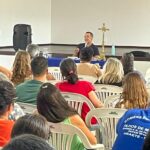 Com o objetivo de rezar e refletir sobre as “sedes” das comunidades paroquiais, padre Dênis Cândido, pregador do encontro, falou sobre a necessidade de se perceber sedento de Deus e da missão de saciar a sede do povo Deus.
