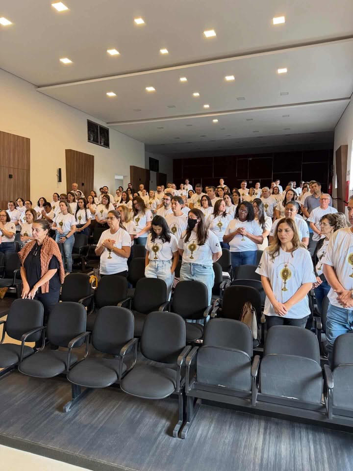 O momento reuniu os ministros da paróquia para um momento de espiritualidade, reflexão e adoração ao Santíssimo Sacramento.