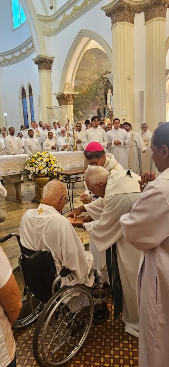 No ocasião, os sacerdotes se reuniram com o seu bispo para também renovar as promessas sacerdotais, que foram proferidas no dia da ordenação sacerdotal.