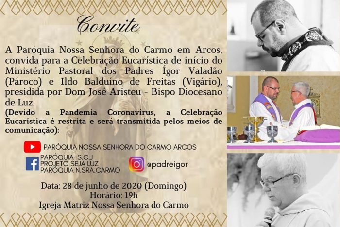 A missa de apresentação dos sacerdotes será no domingo, 28 de junho, às 19h00, na Igreja Matriz Nossa Senhora do Carmo, com a presença do bispo Dom José Aristeu, e não haverá a presença do púbico, somente transmitida pelas redes sociais da paróquia.