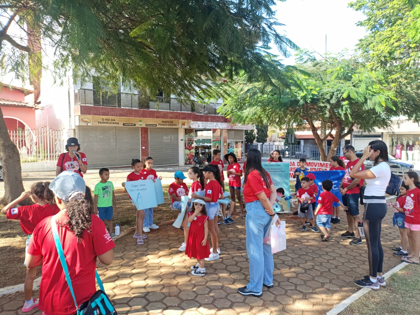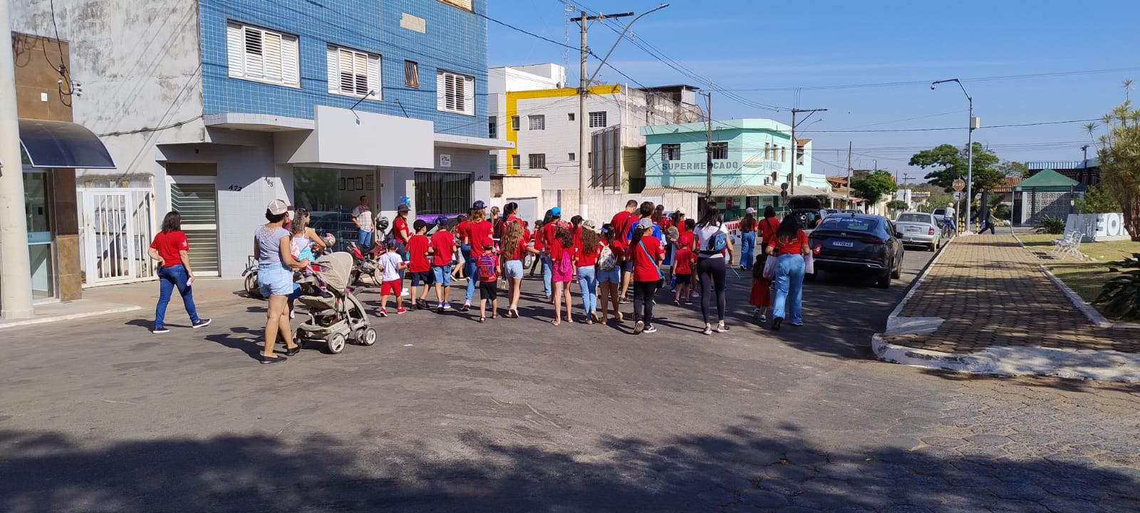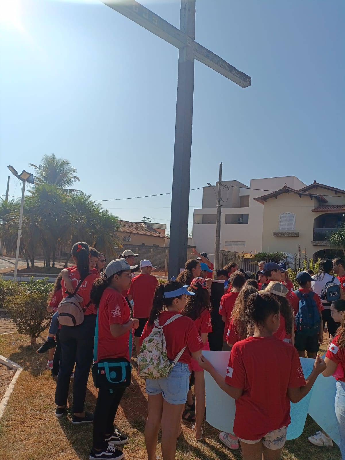 O MEJ percorreu as ruas da cidade rezando o santo terço, depois plantou árvores, teve brincadeiras, muita animação e lanche.