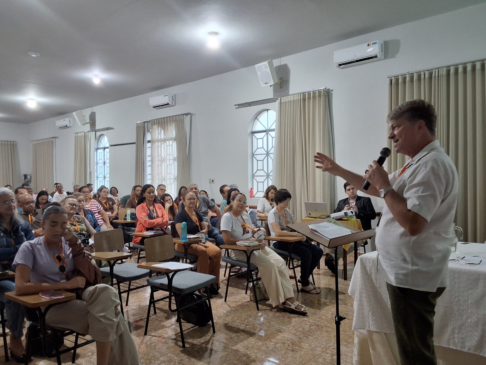 Em seguida foi trabalhado o tema, “Cantando a Liturgia”, momento conduzido pelo padre Almerindo Silveira Barbosa, coordenador diocesano de Pastoral, que se debruçou sobre a música nas celebrações com sua origem, sentido e requisitos fundamentais.