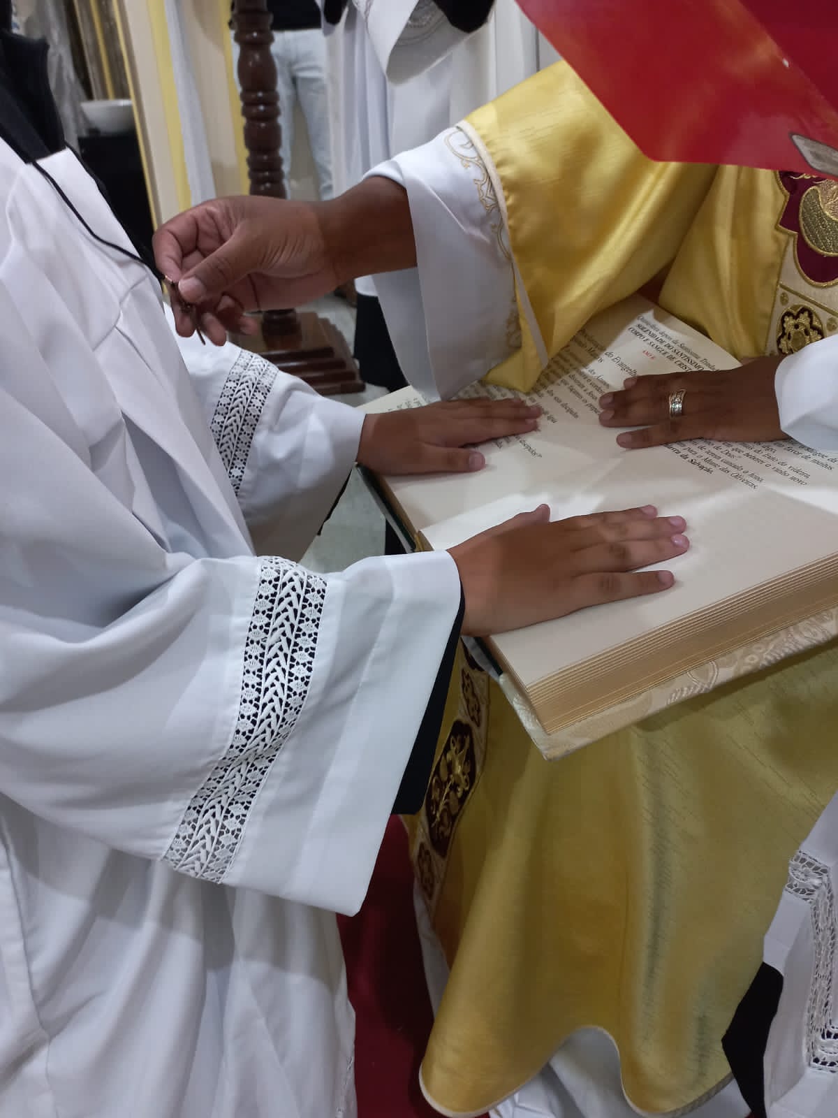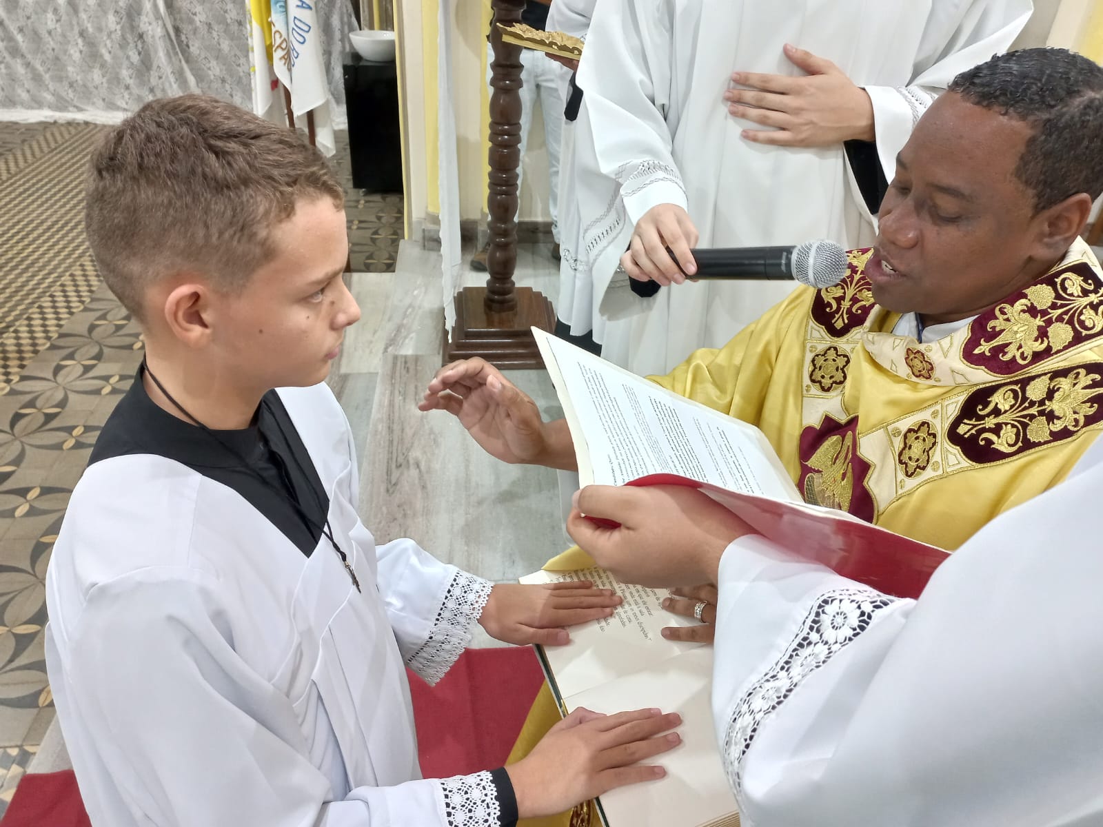 “Que São Tarcísio seja modelo de serviço e interceda por cada um de nossos novos acólitos! Agradecemos aos coordenadores Ricardo e Ana Flávia pela dedicação ao ministério”.