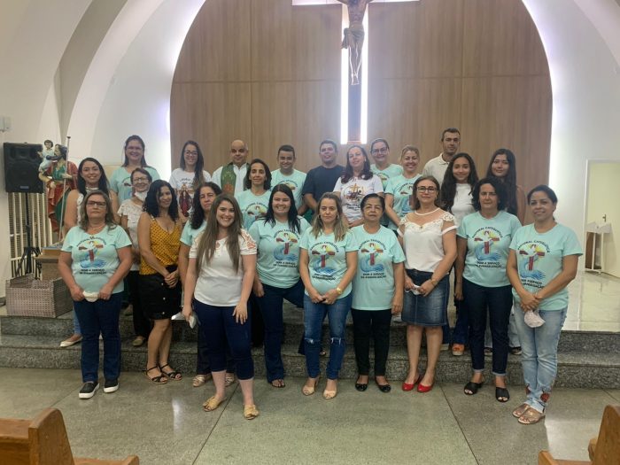 A equipe da Catequese Paroquial está recebendo novos catequistas, os quais ajudarão em novas turmas de preparação para a Primeira Eucaristia e a Crisma. Os catequistas veteranos ajudam na formação dos novos e a missão vai crescendo na comunidade eclesial.