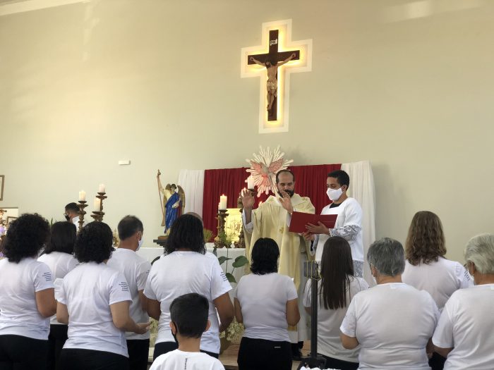 Com número limitado de participantes, a celebração foi transmitida nas redes sociais da Paróquia São Rafael.