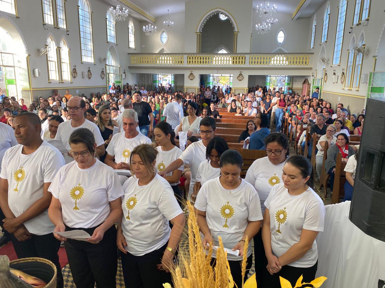 Com a igreja lotada, receberam a investidura 23 novos ministros. Familiares dos ministros e toda a comunidade paroquial participaram deste importante momento celebrativo.