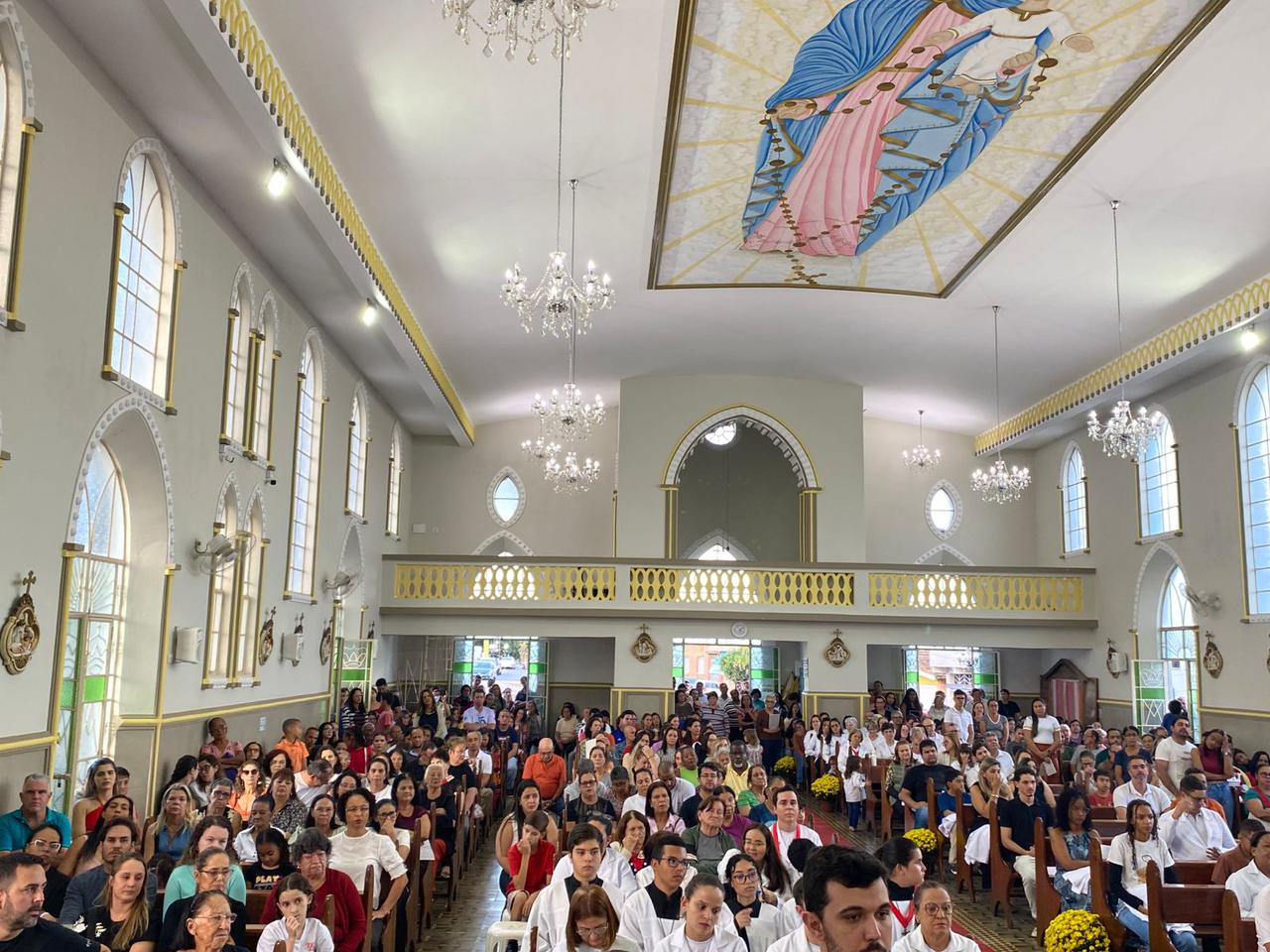 A solene celebração, realizada na Igreja Matriz Nossa Senhora do Rosário, foi presidida pelo pároco, padre Antônio Carlos Ferreira, com a presença do seminarista David Rodrigues.