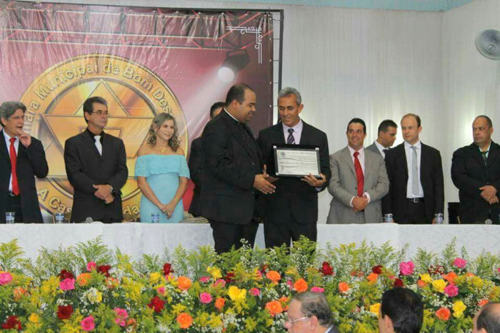 Na noite de sexta-feira, 06 de outubro, no Sesc Laces, em Bom Despacho, padre Denison Carlos Nascimento Costa esteve presente no evento para receber o título de Cidadão Honorário da cidade.