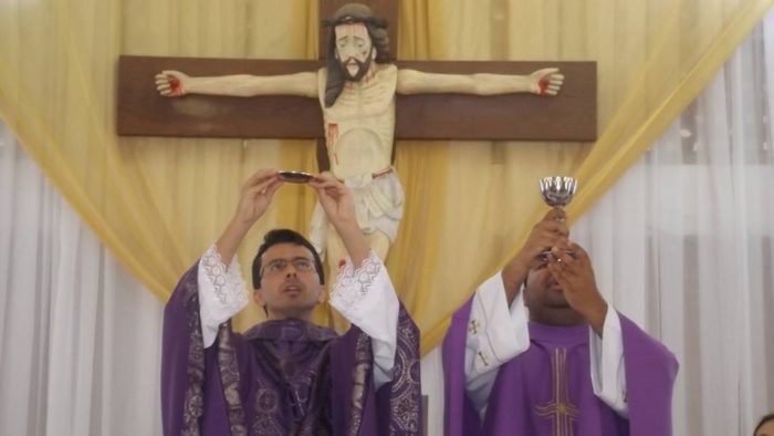 O pároco padre Denison Costa também esteve presente e concelebrou com padre Ednaldo.