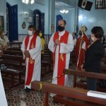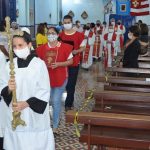 A celebração respeitou a taxa de ocupação imposta pelo município e as medidas preventivas como: o uso obrigatório de máscaras, higienização das mãos. E os bancos foram ocupados por três pessoas obedecendo o distanciamento.