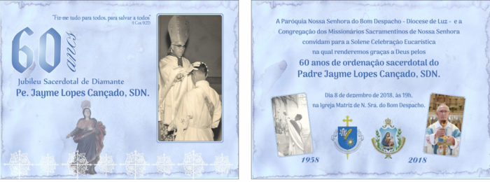 A Paróquia Nossa Senhora do Bom Despacho, em Bom Despacho, realizará a Missa em Ação de Graças pelos 60 Anos de Ordenação Sacerdotal do padre Jayme Lopes Cançado, SDN.