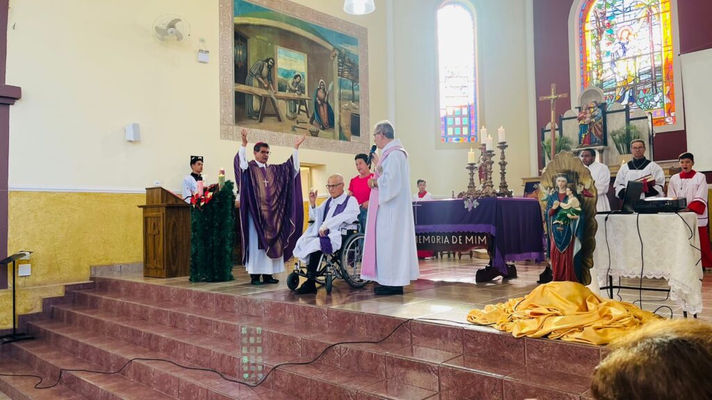 A Santa Missa foi presidida pelo bispo diocesano, Dom José Aristeu Vieira, com a participação do pároco, padre José Pimenta da Silva e do sacerdote aniversariante.