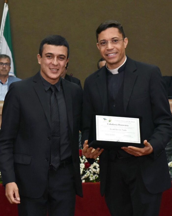 “Muita satisfação e alegria em conceder o Título de Cidadão Honorário ao padre Keroll. O Título é um reconhecimento e agradecimento aos relevantes serviços prestados à frente da Paróquia Nossa Senhora do Rosário”. Enfatiza o vereador João Paulo.