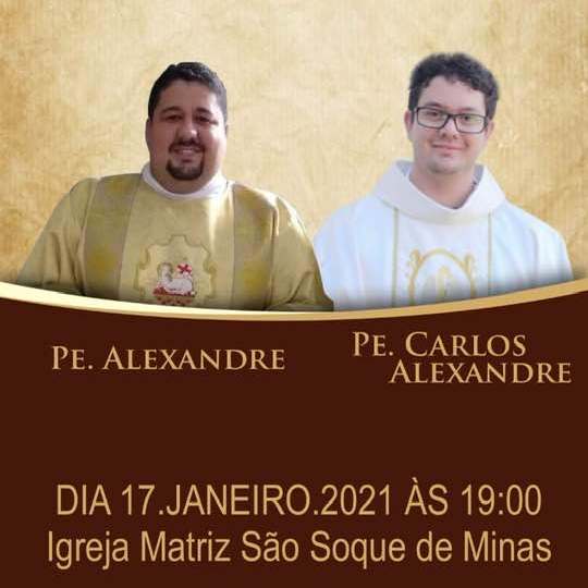 No próximo domingo, 17 de janeiro, às 19h00, na Igreja Matriz São Roque, em São Roque de Minas, será a apresentação do novo pároco: padre Carlos Alexandre Ferreira Chaves e o vigário: recém-ordenado padre Alexandre Alves Caetano na Paróquia São Roque.