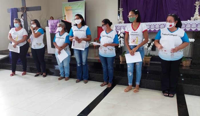 A cerimônia foi realizada no último domingo, seis de março, às 19h, na Igreja Matriz Nossa Senhora do Rosário, com a presença dos catequistas, catequizandos e seus familiares.